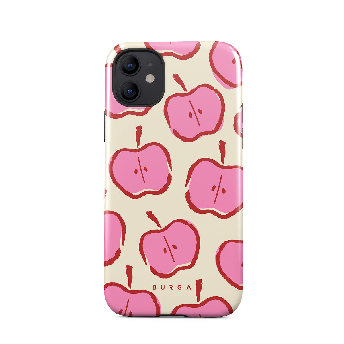 Our Bon Appétit iPhone 12 phone case design makes every day feel like a magical adventure filled with sweet surprises. The playful pink hues of the apples stand out brilliantly against the serene cream background, creating a captivating and enchanting visual.