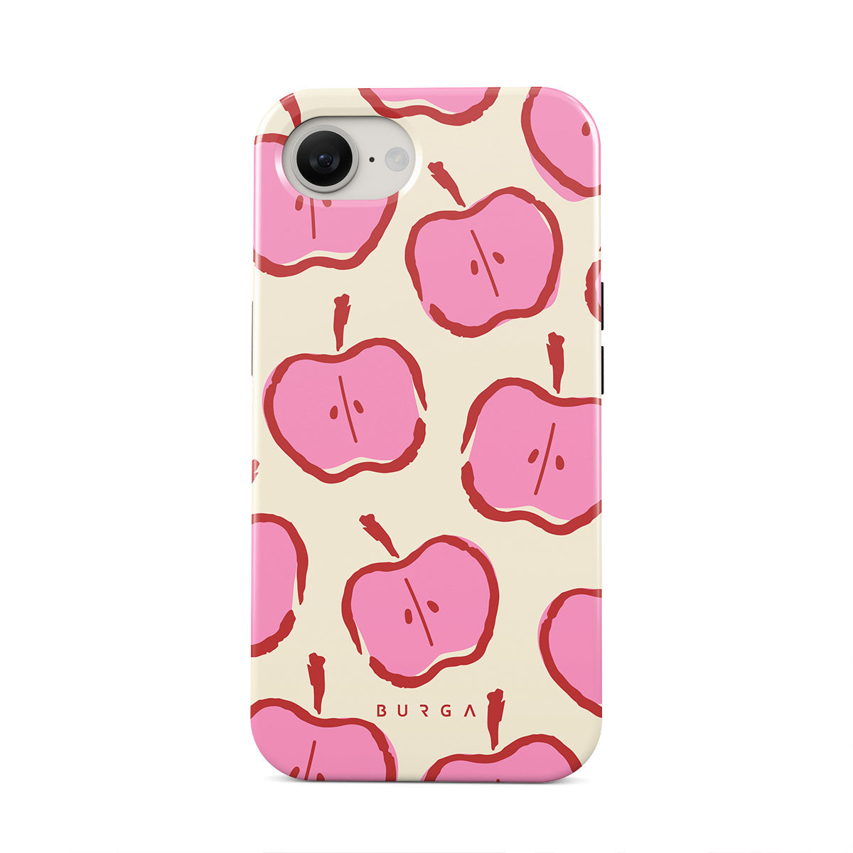 Our Bon Appétit iPhone 16e phone case design makes every day feel like a magical adventure filled with sweet surprises. The playful pink hues of the apples stand out brilliantly against the serene cream background, creating a captivating and enchanting visual.