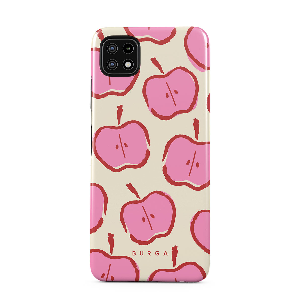 Our Bon Appétit Samsung Galaxy A22 5G phone case design makes every day feel like a magical adventure filled with sweet surprises. The playful pink hues of the apples stand out brilliantly against the serene cream background, creating a captivating and enchanting visual.