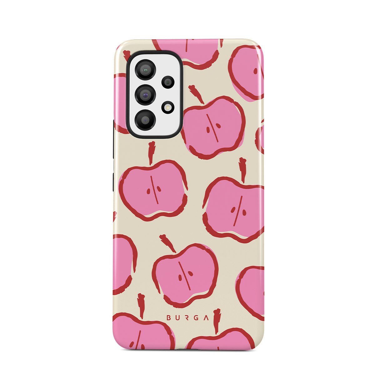 Our Bon Appétit Samsung Galaxy A23 4G / 5G phone case design makes every day feel like a magical adventure filled with sweet surprises. The playful pink hues of the apples stand out brilliantly against the serene cream background, creating a captivating and enchanting visual.