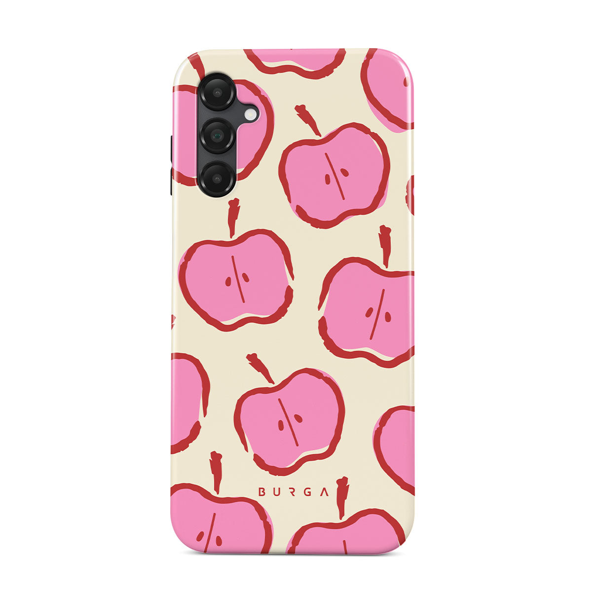 Our Bon Appétit Samsung Galaxy A25 phone case design makes every day feel like a magical adventure filled with sweet surprises. The playful pink hues of the apples stand out brilliantly against the serene cream background, creating a captivating and enchanting visual.