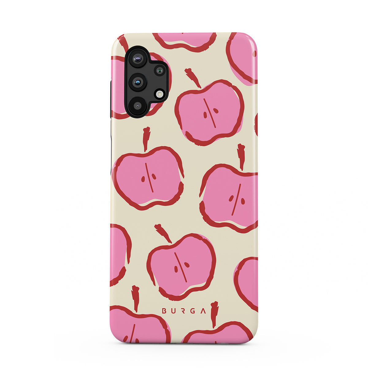 Our Bon Appétit Samsung Galaxy A32 5G phone case design makes every day feel like a magical adventure filled with sweet surprises. The playful pink hues of the apples stand out brilliantly against the serene cream background, creating a captivating and enchanting visual.