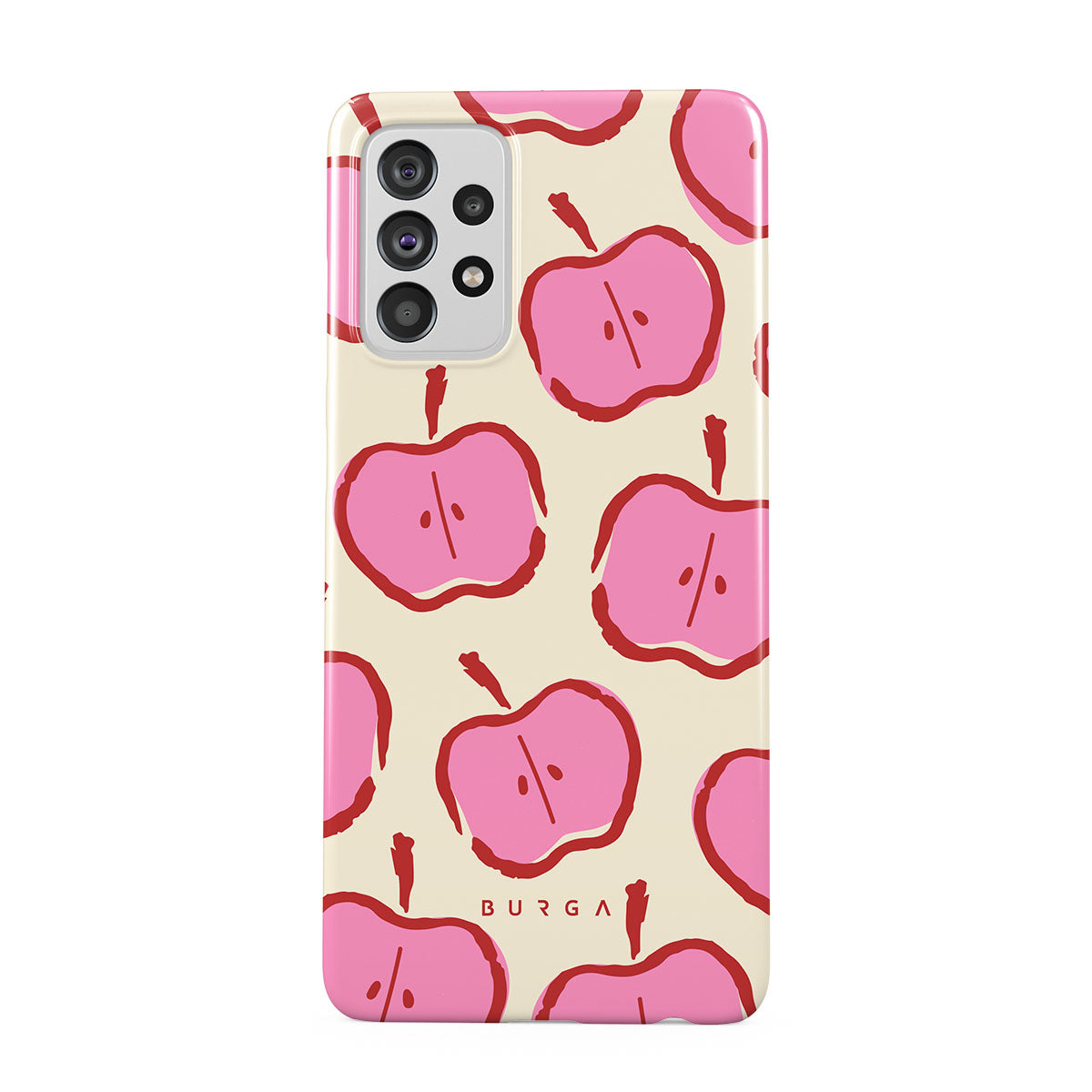 Our Bon Appétit Samsung Galaxy A72 4G / 5G phone case design makes every day feel like a magical adventure filled with sweet surprises. The playful pink hues of the apples stand out brilliantly against the serene cream background, creating a captivating and enchanting visual.