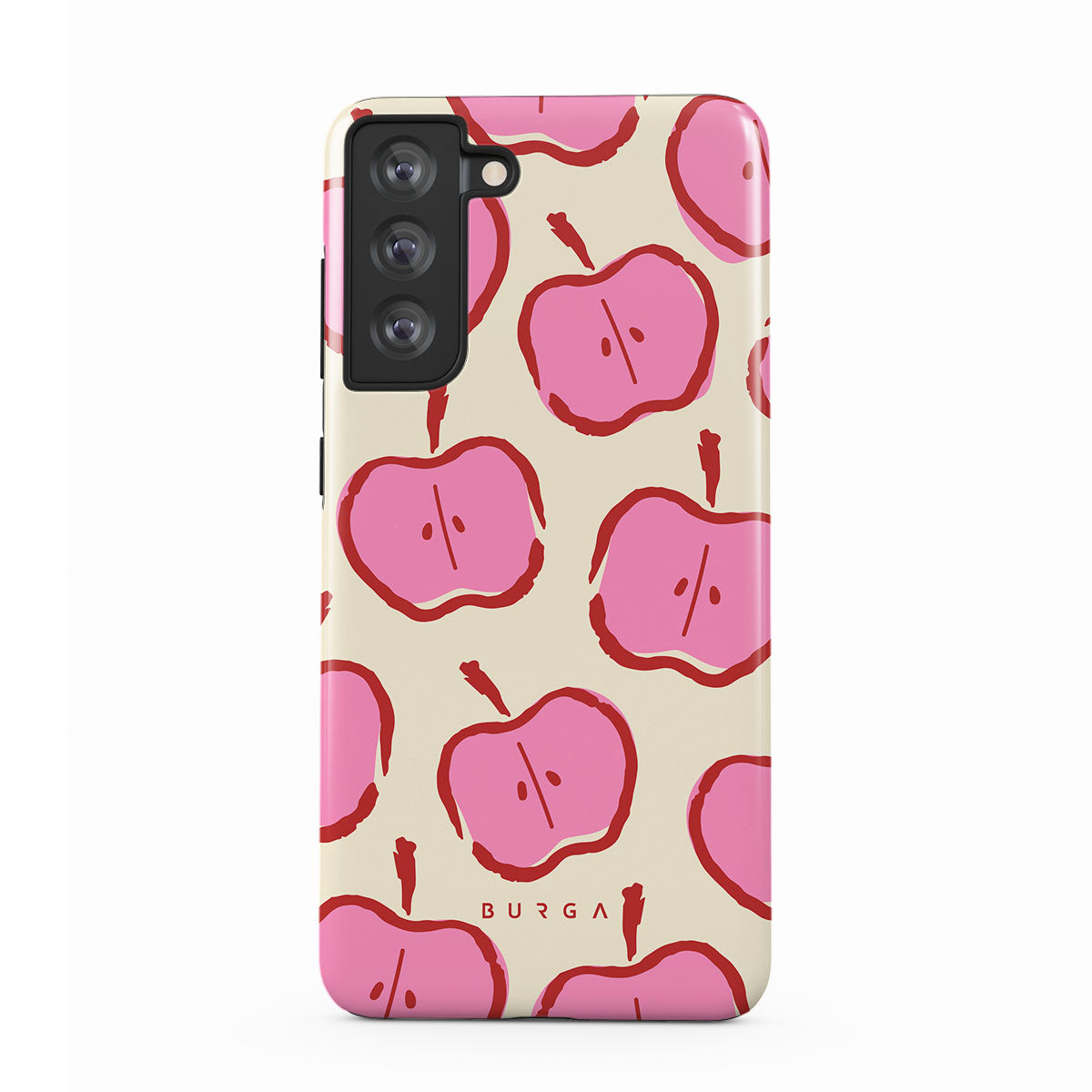 Our Bon Appétit Samsung Galaxy S21 FE phone case design makes every day feel like a magical adventure filled with sweet surprises. The playful pink hues of the apples stand out brilliantly against the serene cream background, creating a captivating and enchanting visual.
