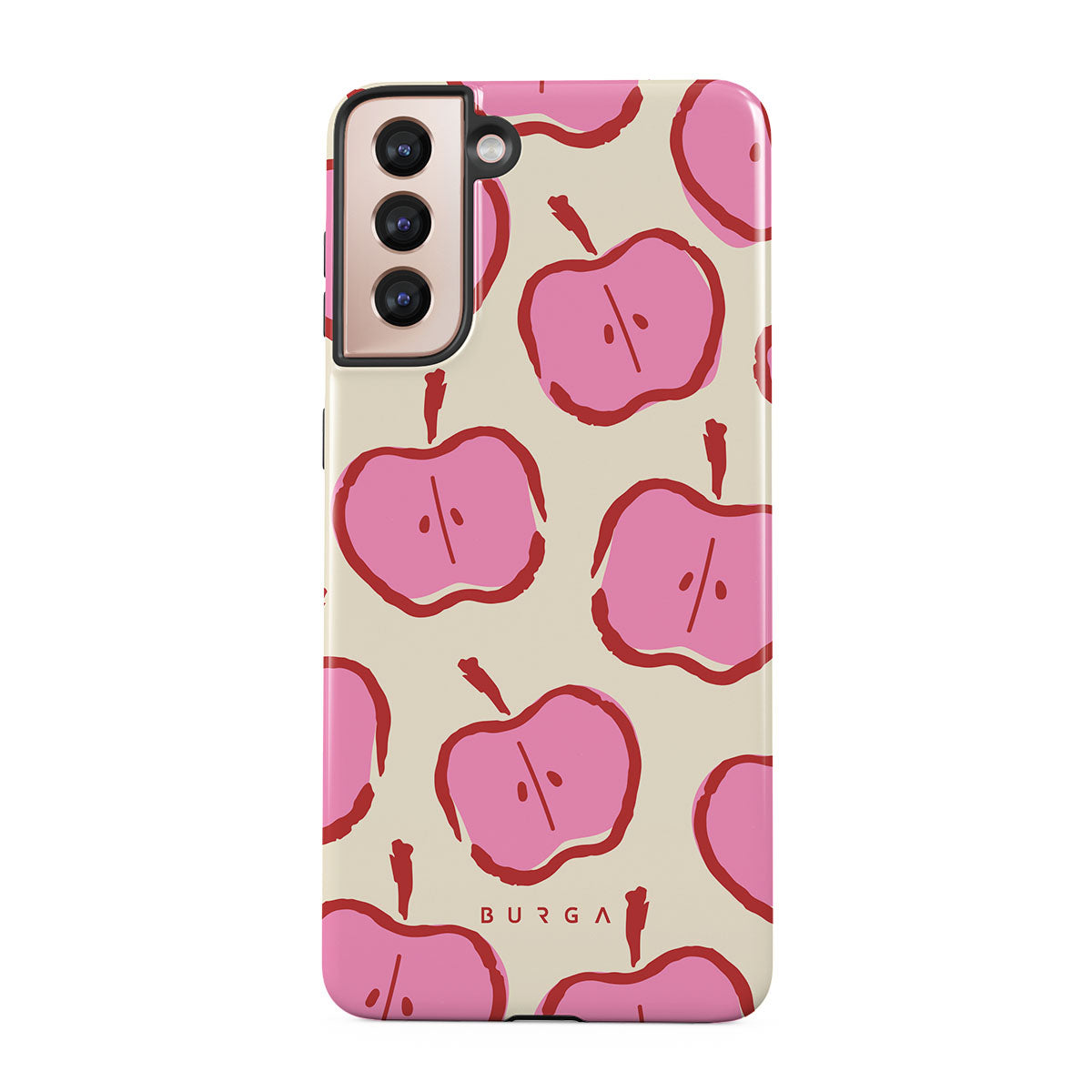 Our Bon Appétit Samsung Galaxy S21 Plus phone case design makes every day feel like a magical adventure filled with sweet surprises. The playful pink hues of the apples stand out brilliantly against the serene cream background, creating a captivating and enchanting visual.