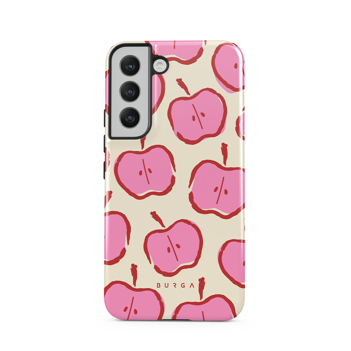 Our Bon Appétit Samsung Galaxy S22 Plus phone case design makes every day feel like a magical adventure filled with sweet surprises. The playful pink hues of the apples stand out brilliantly against the serene cream background, creating a captivating and enchanting visual.