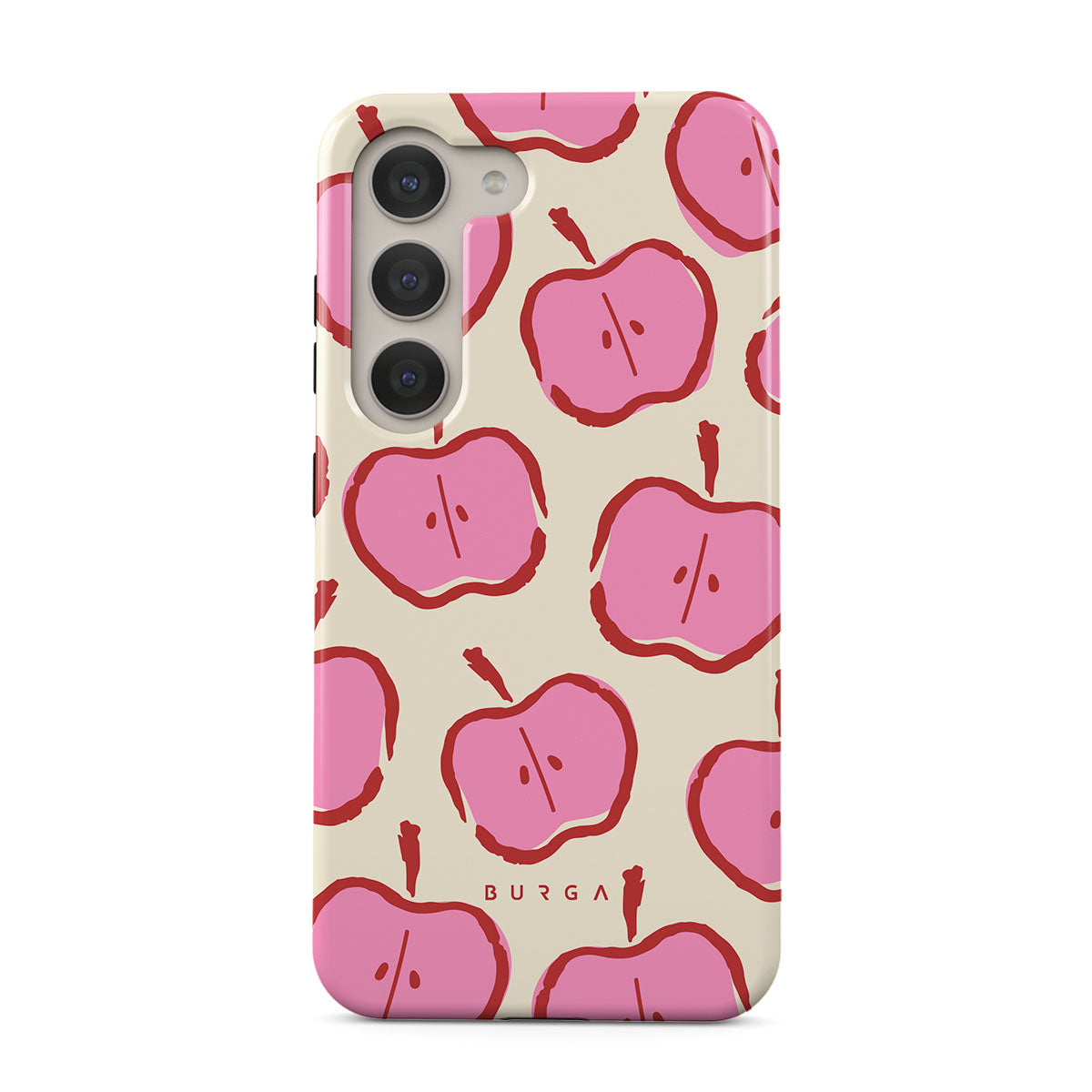 Our Bon Appétit Samsung Galaxy S23 phone case design makes every day feel like a magical adventure filled with sweet surprises. The playful pink hues of the apples stand out brilliantly against the serene cream background, creating a captivating and enchanting visual.