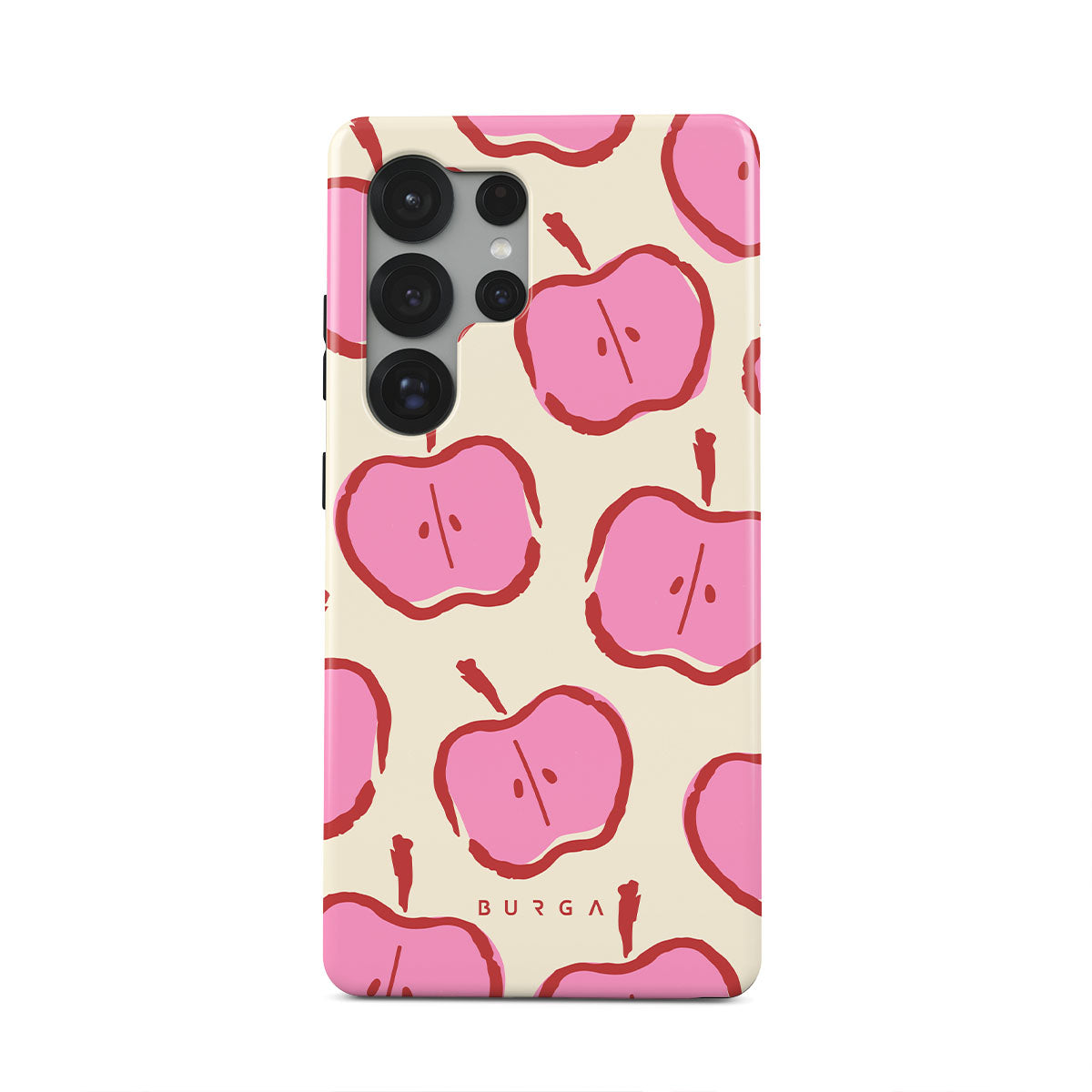 Our Bon Appétit Samsung Galaxy S25 Ultra phone case design makes every day feel like a magical adventure filled with sweet surprises. The playful pink hues of the apples stand out brilliantly against the serene cream background, creating a captivating and enchanting visual.