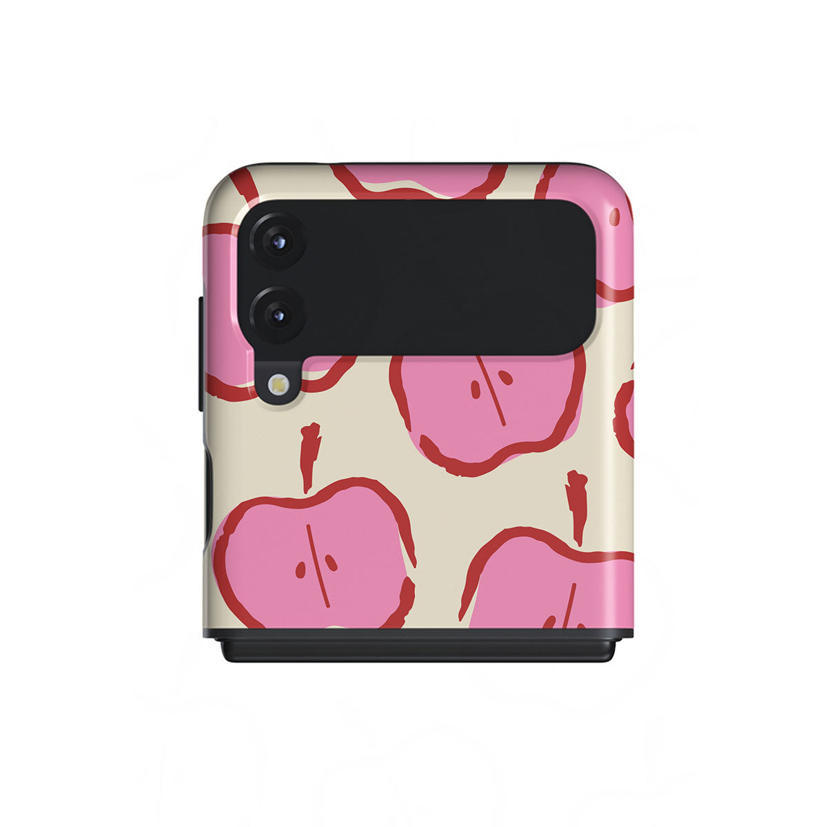 Our Bon Appétit Samsung Galaxy Z Flip 3 phone case design makes every day feel like a magical adventure filled with sweet surprises. The playful pink hues of the apples stand out brilliantly against the serene cream background, creating a captivating and enchanting visual.