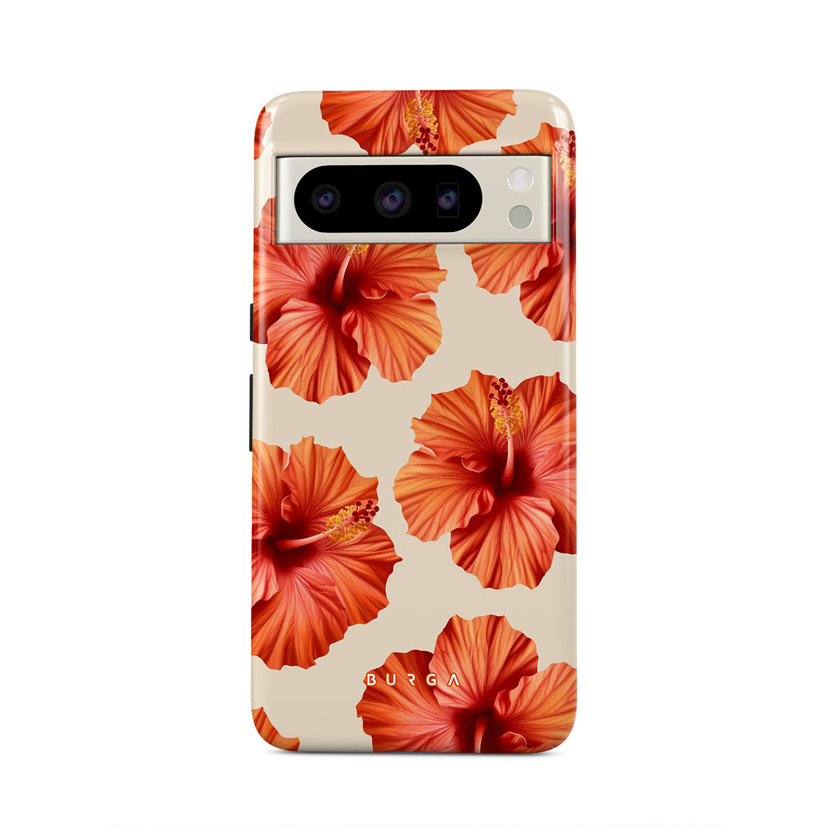 Transport yourself to a lush tropical escape with Bonita. Featuring bold, beautiful hibiscus blooms that pop against a creamy backdrop, this Google Pixel 8 Pro phone case design is perfect for those who dream of vibrant, floral beauty and exotic adventures.