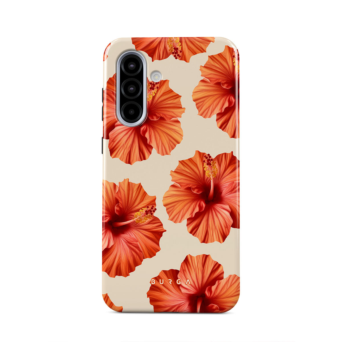 Transport yourself to a lush tropical escape with Bonita. Featuring bold, beautiful hibiscus blooms that pop against a creamy backdrop, this Samsung Galaxy A56 5G phone case design is perfect for those who dream of vibrant, floral beauty and exotic adventures.
