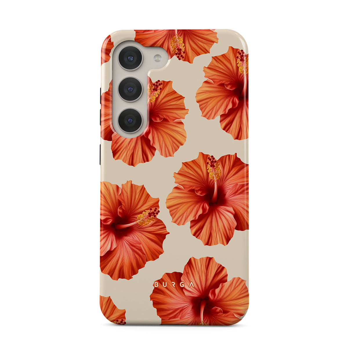 Transport yourself to a lush tropical escape with Bonita. Featuring bold, beautiful hibiscus blooms that pop against a creamy backdrop, this Samsung Galaxy S23 phone case design is perfect for those who dream of vibrant, floral beauty and exotic adventures.