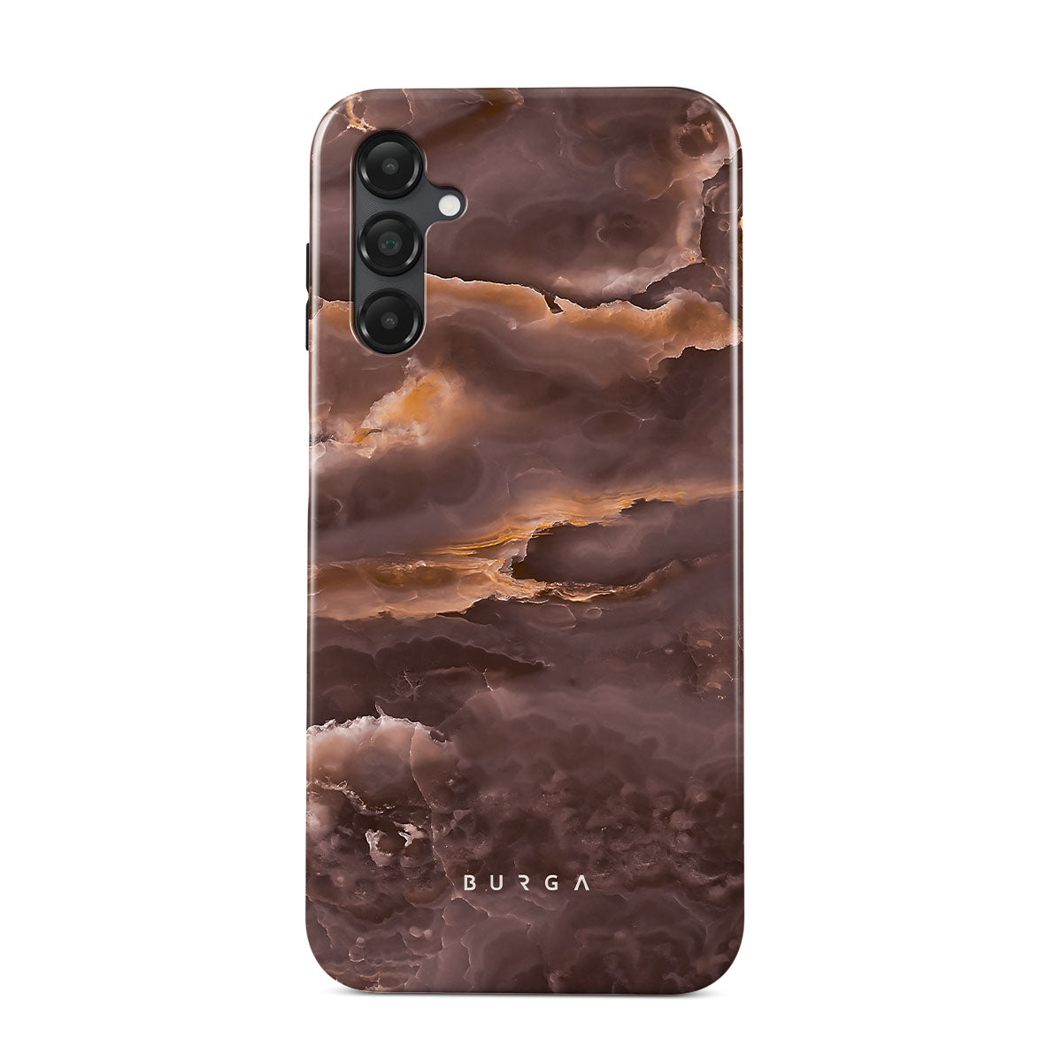 The bonfire starts to flicker – it's time to gather more wood. With a brown marble Samsung Galaxy A25 phone case design inspired by a bonfire flame, carry a feeling of content and excitement wherever you go. The protective case is needed in a hike, but a stylish accessory will match your aesthetic even on a lazy Sunday.