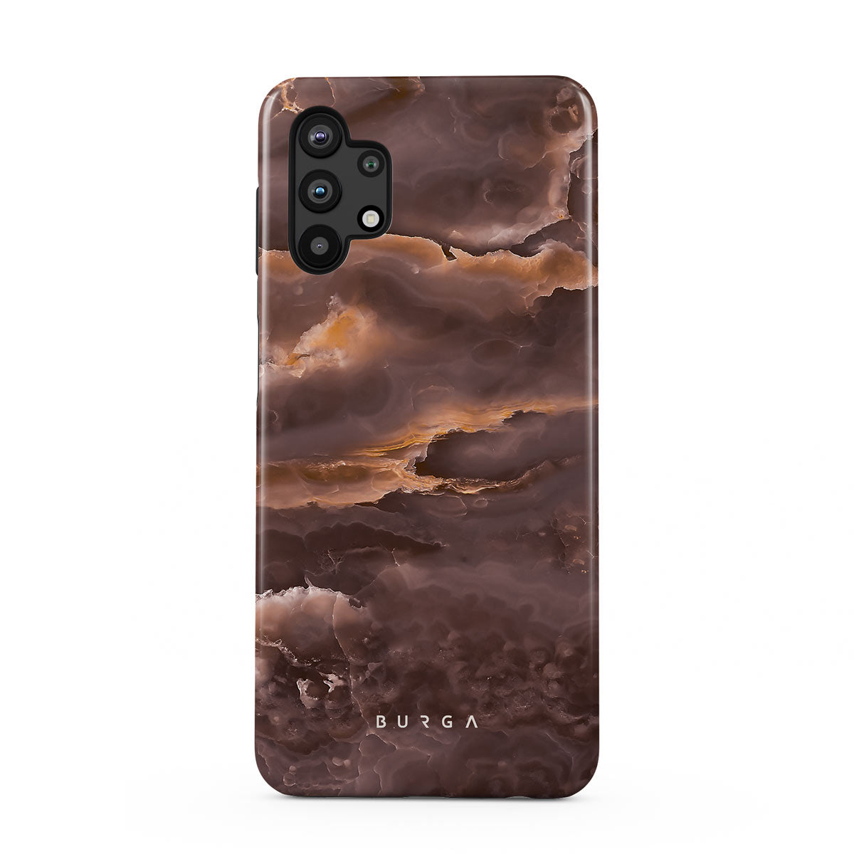 The bonfire starts to flicker – it's time to gather more wood. With a brown marble Samsung Galaxy A32 5G phone case design inspired by a bonfire flame, carry a feeling of content and excitement wherever you go. The protective case is needed in a hike, but a stylish accessory will match your aesthetic even on a lazy Sunday.