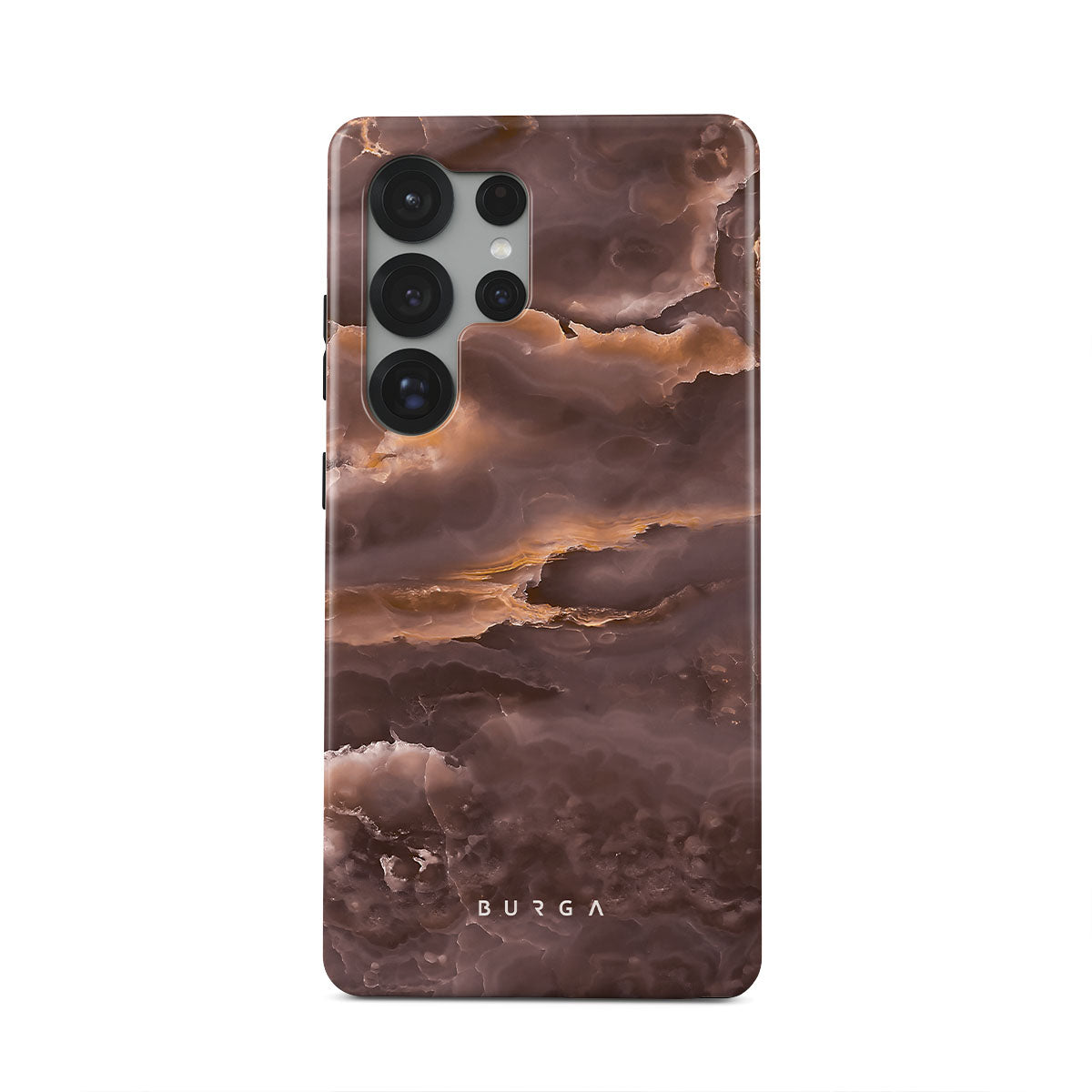 The bonfire starts to flicker – it's time to gather more wood. With a brown marble Samsung Galaxy S25 Ultra phone case design inspired by a bonfire flame, carry a feeling of content and excitement wherever you go. The protective case is needed in a hike, but a stylish accessory will match your aesthetic even on a lazy Sunday.
