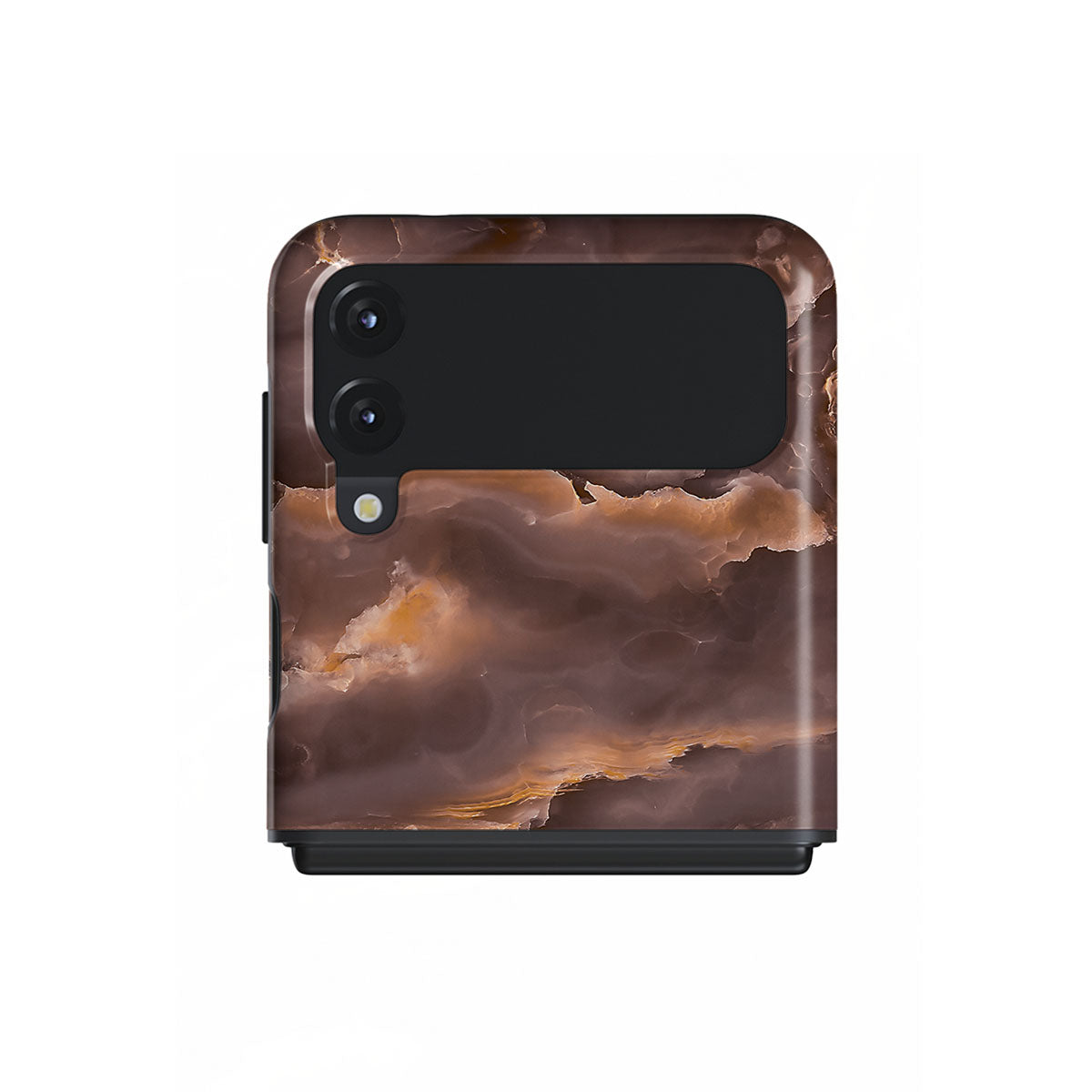 The bonfire starts to flicker – it's time to gather more wood. With a brown marble Samsung Galaxy Z Flip 3 phone case design inspired by a bonfire flame, carry a feeling of content and excitement wherever you go. The protective case is needed in a hike, but a stylish accessory will match your aesthetic even on a lazy Sunday.