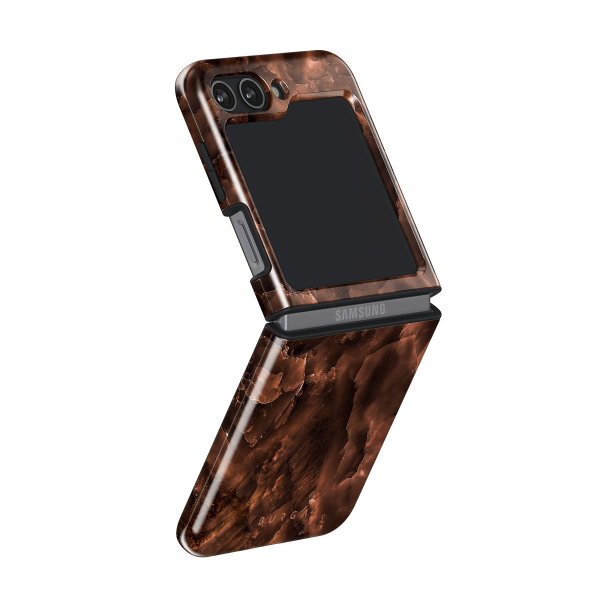 The smell of chestnuts roasting on the open fire and the coziness of the bonfire allows us to feel the comfort of weather that requires another layer. With the warm brown color of our Toasted Chestnut Samsung Galaxy Z Flip 5 phone case, you can bring a cozy feeling everywhere you go while having the best protection for your phone.