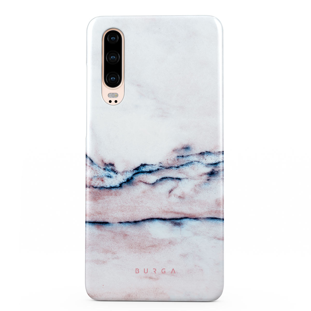 A pastel phone case is a must in every collection, and our soft Bubble Gum Huawei P30 phone case is the one. The minimalistic design features a pink gradient with deep blue swirls in a marble pattern. Such a hard-shell case will provide heavy-duty protection while adding a touch of pastel to your collection