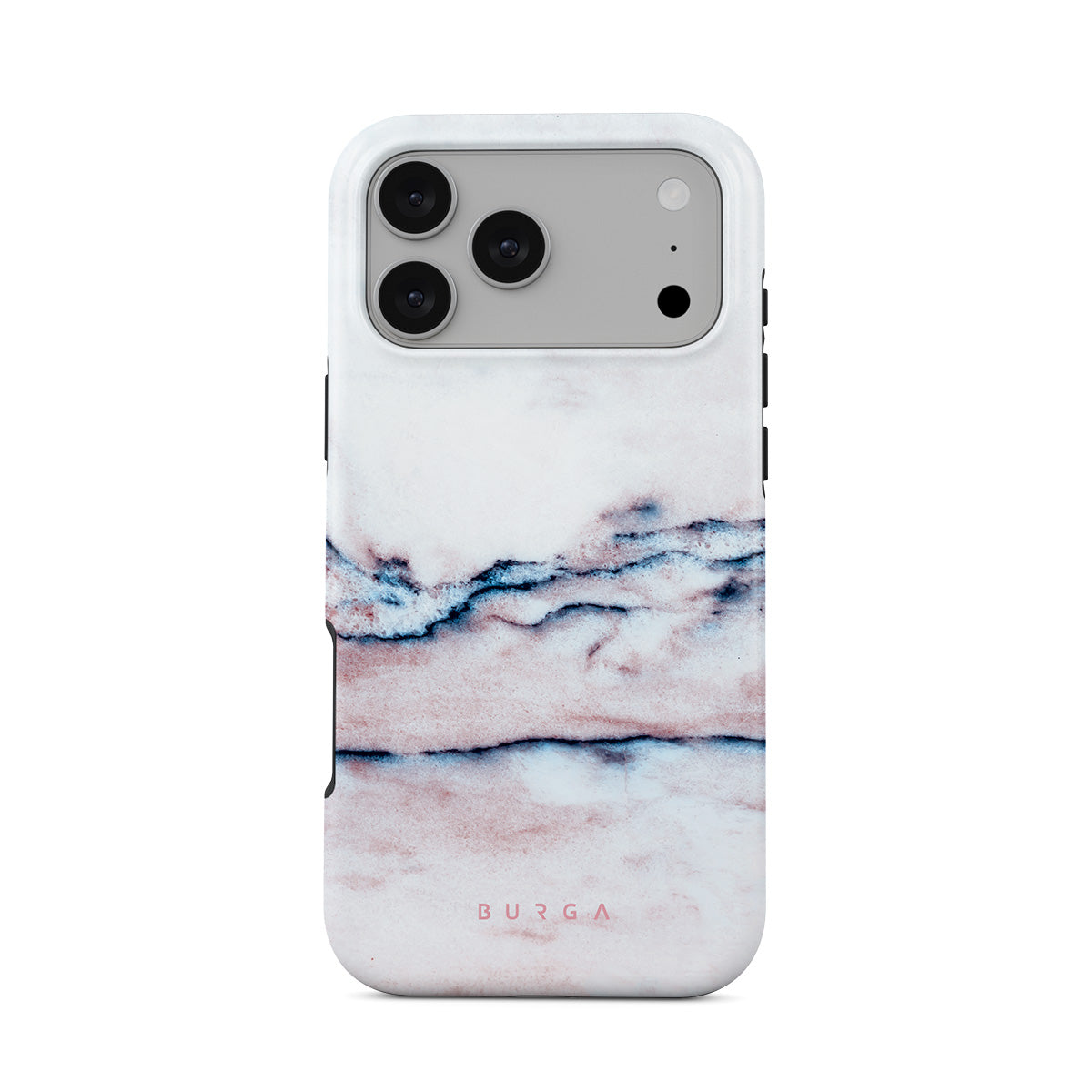 A pastel phone case is a must in every collection, and our soft Bubble Gum iPhone 17 Pro Max phone case is the one. The minimalistic design features a pink gradient with deep blue swirls in a marble pattern. Such a hard-shell case will provide heavy-duty protection while adding a touch of pastel to your collection