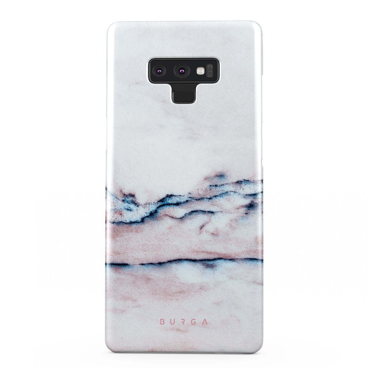 A pastel phone case is a must in every collection, and our soft Bubble Gum Samsung Galaxy Note 9 phone case is the one. The minimalistic design features a pink gradient with deep blue swirls in a marble pattern. Such a hard-shell case will provide heavy-duty protection while adding a touch of pastel to your collection