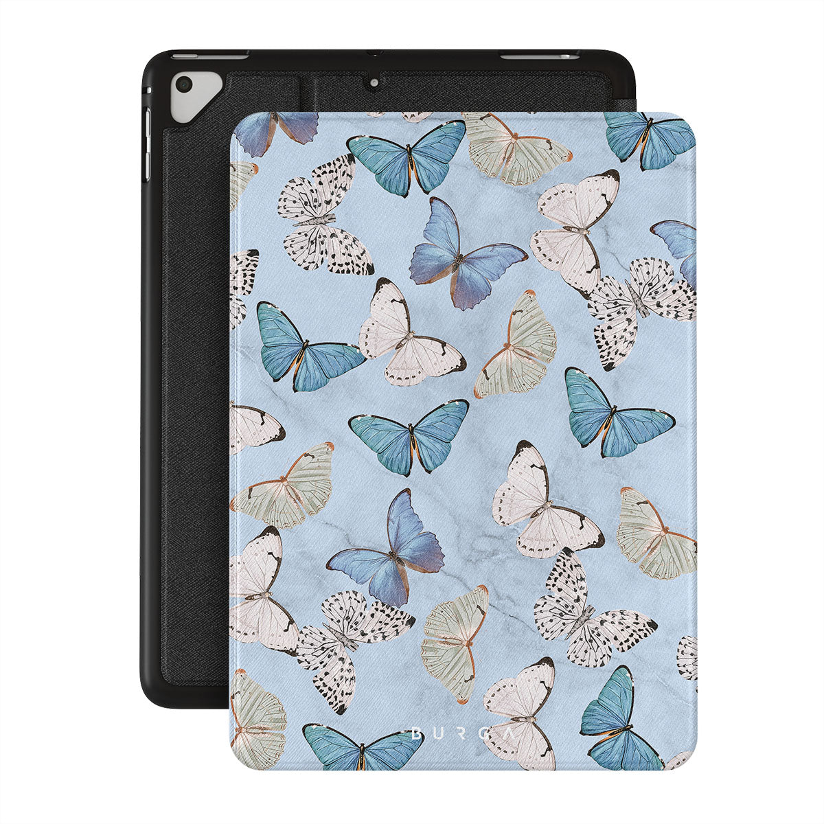 Pastel blue and a playful pattern of summery butterflies create a dreamy combination in our iPad 9.7 (6th/5th Gen) folio case. Carry the feeling of the butterflies in your stomach while protecting your iPad from any dangers, as the hard-shell case will keep it sound and safe.