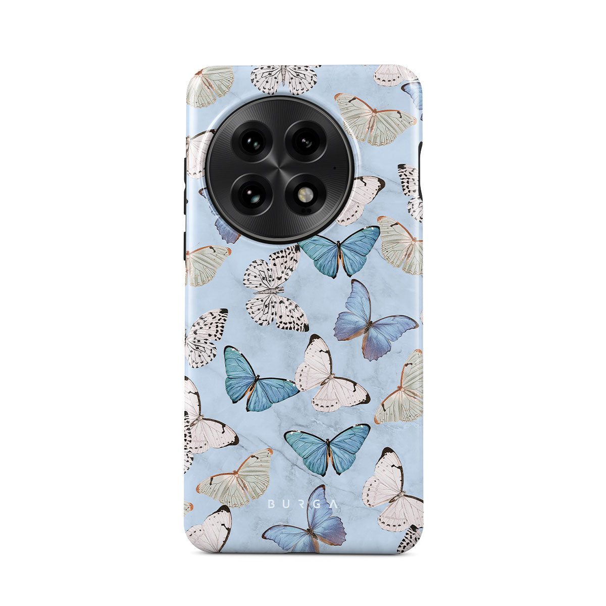 Pastel blue and a playful pattern of summery butterflies create a dreamy combination in our OnePlus 13 phone case. Carry the feeling of the butterflies in your stomach while protecting your phone from any dangers, as the hard-shell case will keep it sound and safe.