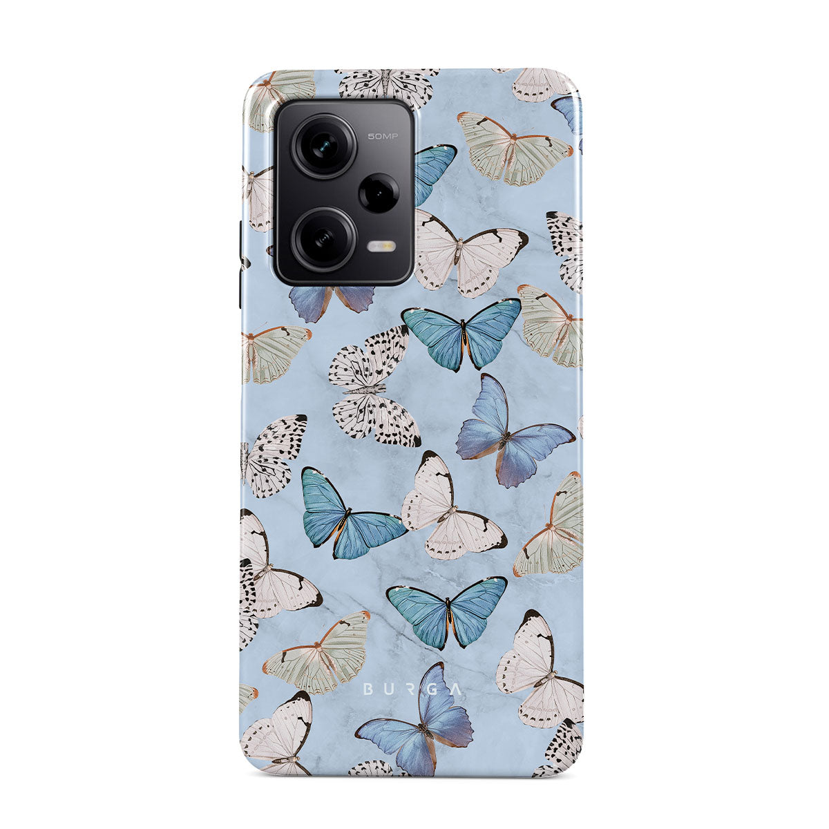 Pastel blue and a playful pattern of summery butterflies create a dreamy combination in our Xiaomi Redmi Note 12 Pro 5G phone case. Carry the feeling of the butterflies in your stomach while protecting your phone from any dangers, as the hard-shell case will keep it sound and safe.