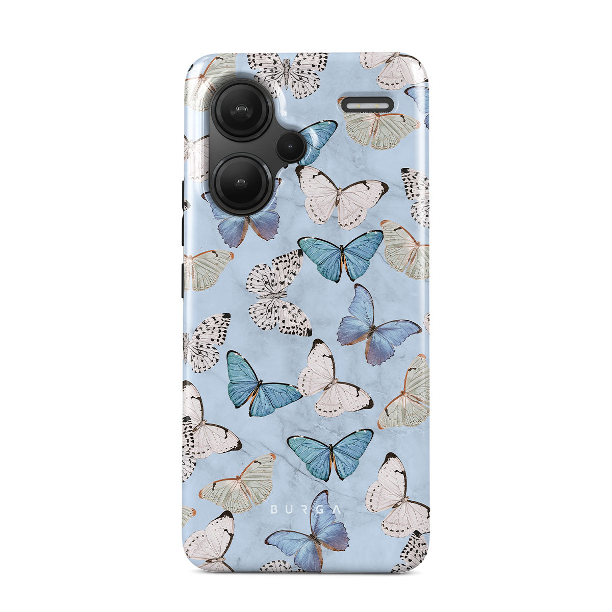Pastel blue and a playful pattern of summery butterflies create a dreamy combination in our Xiaomi Redmi Note 13 Pro+ 5G phone case. Carry the feeling of the butterflies in your stomach while protecting your phone from any dangers, as the hard-shell case will keep it sound and safe.