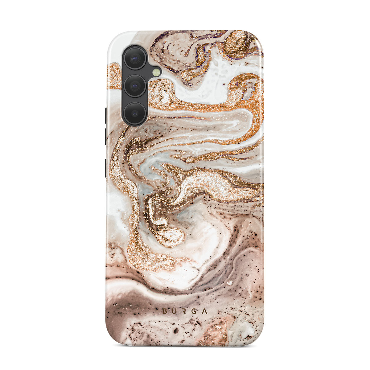 Our enchanting Cappuccino Samsung Galaxy A34 phone case showcases a sophisticated and creamy marble pattern with golden swirls in it. The marble dream radiates elegance and luxury and is guaranteed to add some to your style.