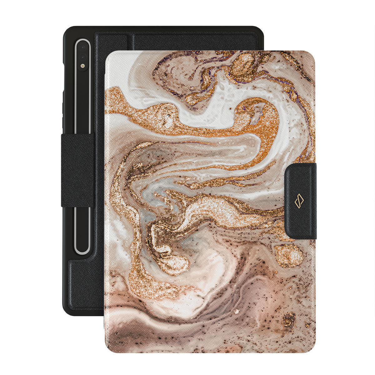 Our enchanting Cappuccino Samsung Galaxy Tab S10+ folio case showcases a sophisticated and creamy marble pattern with golden swirls in it. The marble dream radiates elegance and luxury and is guaranteed to add some to your style.