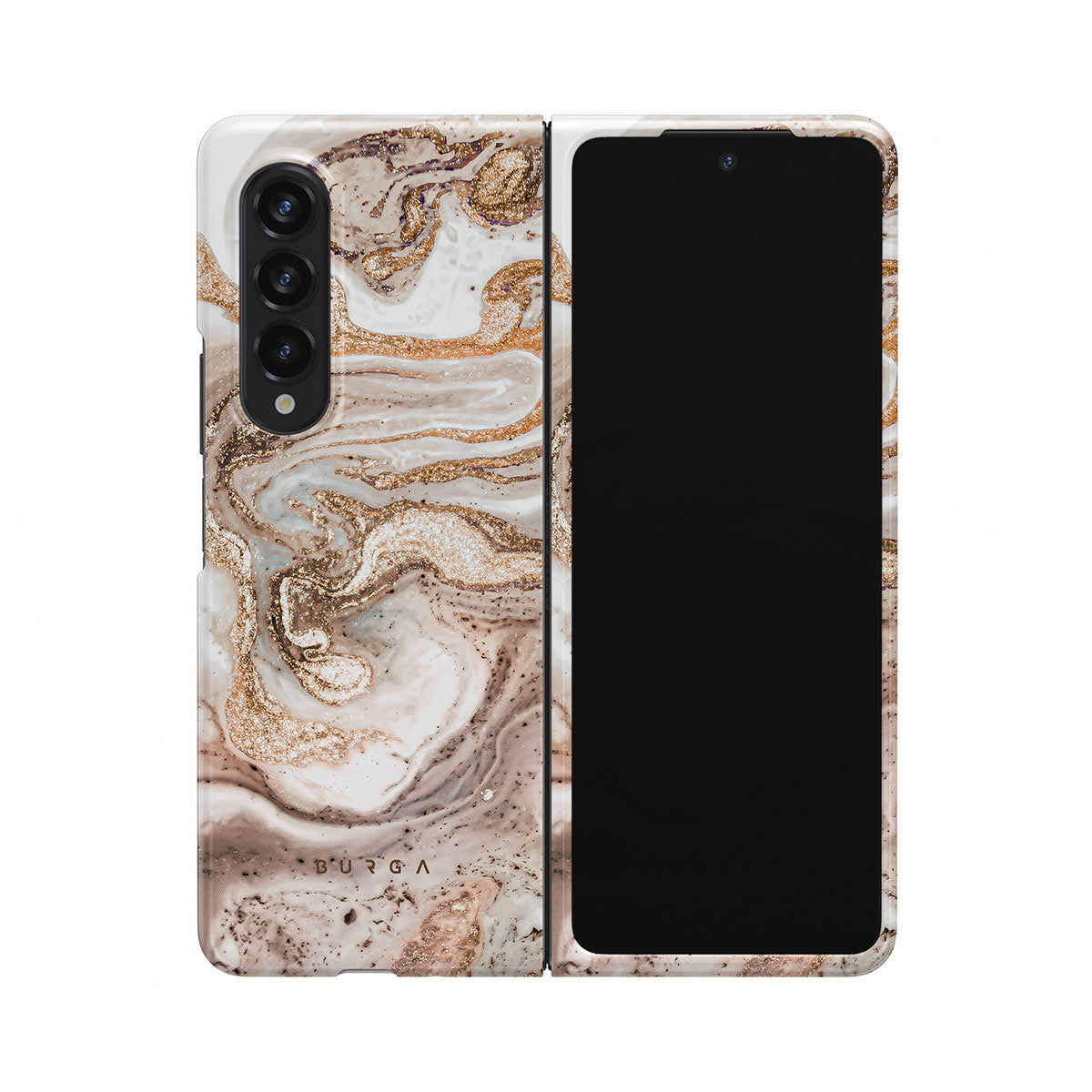 Our enchanting Cappuccino Samsung Galaxy Z Fold 3 phone case showcases a sophisticated and creamy marble pattern with golden swirls in it. The marble dream radiates elegance and luxury and is guaranteed to add some to your style.