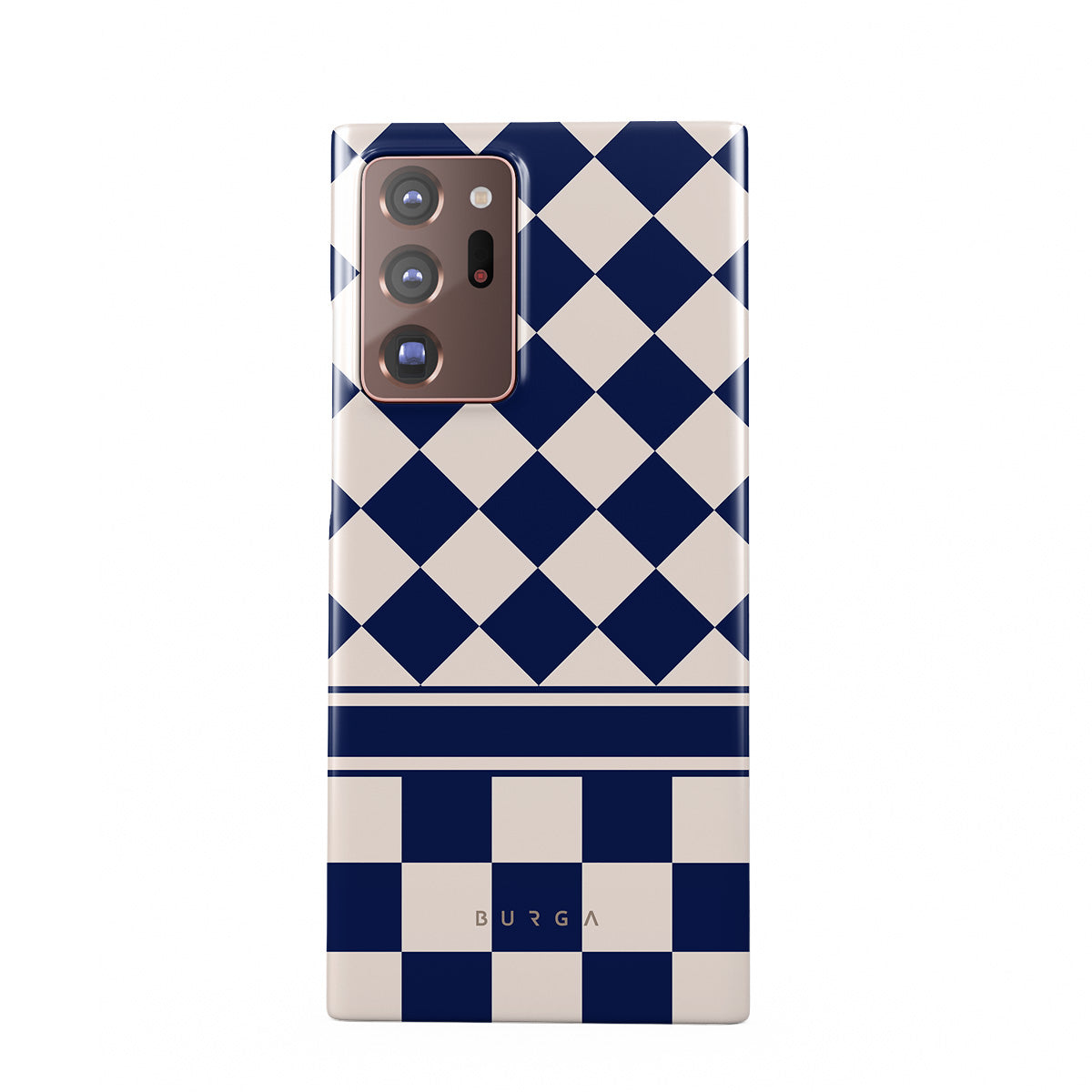 Embrace the essence of subtle luxury with our Check & Mate Samsung Galaxy Note 20 Ultra 4G / 5G phone case design. Blending eggshell and deep blue checkers, it evokes whispers of elegance. While diamonds grace the upper half, the lower half features a timeless chessboard pattern.