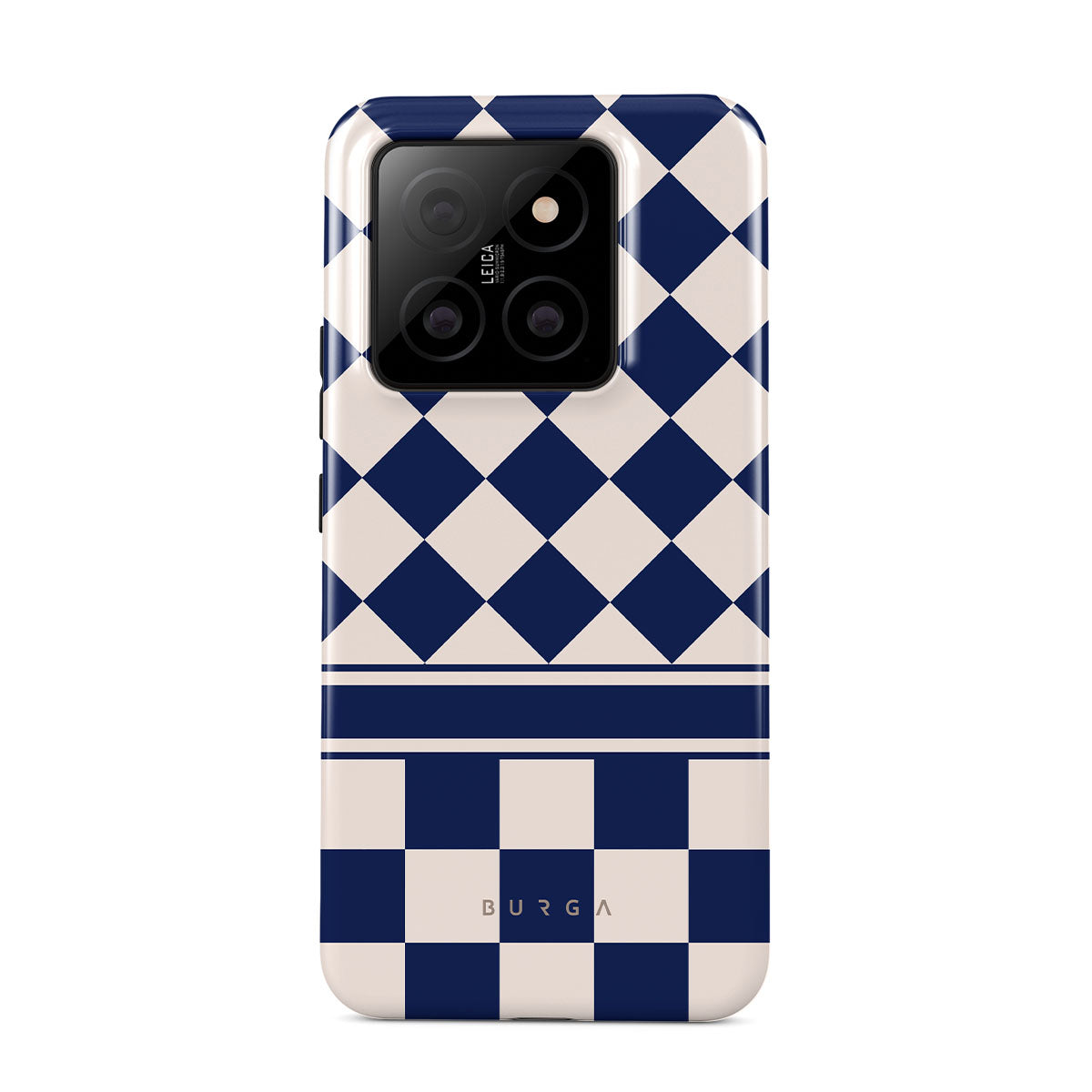 Embrace the essence of subtle luxury with our Check & Mate Xiaomi 14 Pro phone case design. Blending eggshell and deep blue checkers, it evokes whispers of elegance. While diamonds grace the upper half, the lower half features a timeless chessboard pattern.