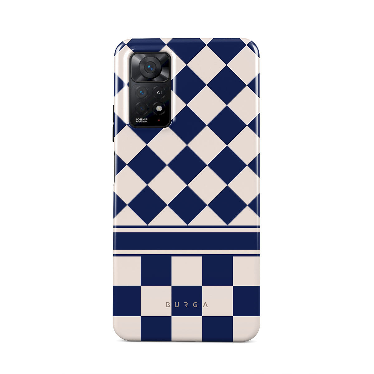 Embrace the essence of subtle luxury with our Check & Mate Xiaomi Redmi Note 11 Pro phone case design. Blending eggshell and deep blue checkers, it evokes whispers of elegance. While diamonds grace the upper half, the lower half features a timeless chessboard pattern.