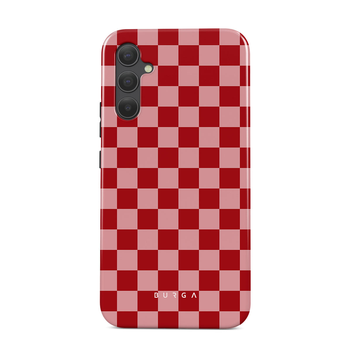 Bold, strong, and never on hold! Our Cheerleader - Samsung Galaxy A34 phone case design will turn your phone into the perfect accessory! The red checkered pattern adds that additional spark to your style while keeping your phone safe and sound in its perfect hard-shell case.