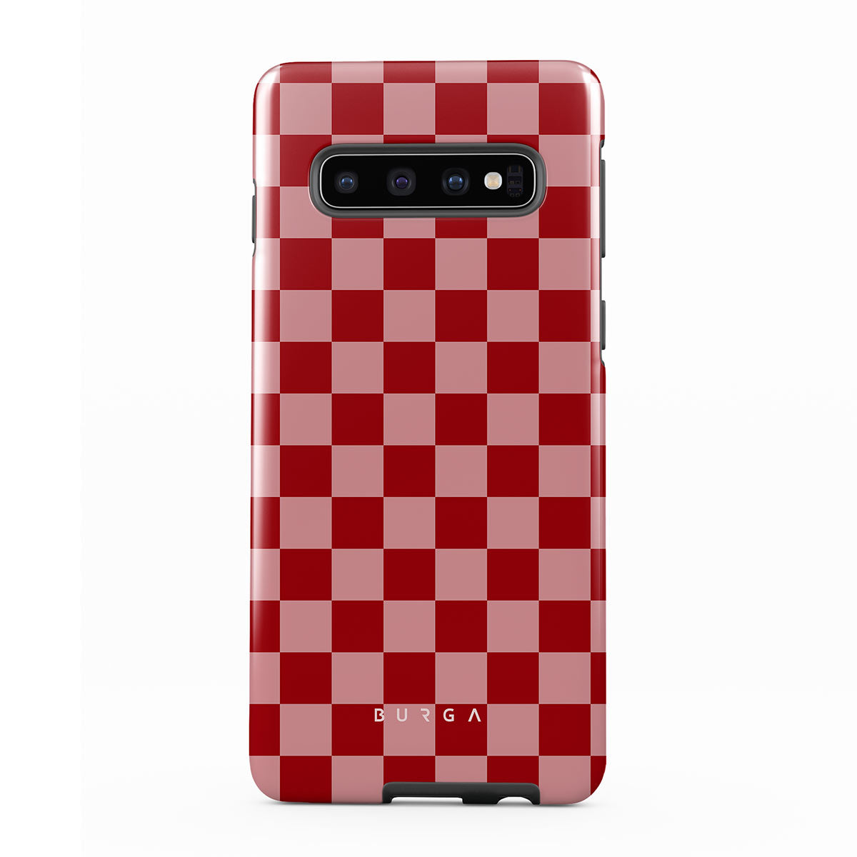 Bold, strong, and never on hold! Our Cheerleader - Samsung Galaxy S10 4G phone case design will turn your phone into the perfect accessory! The red checkered pattern adds that additional spark to your style while keeping your phone safe and sound in its perfect hard-shell case.