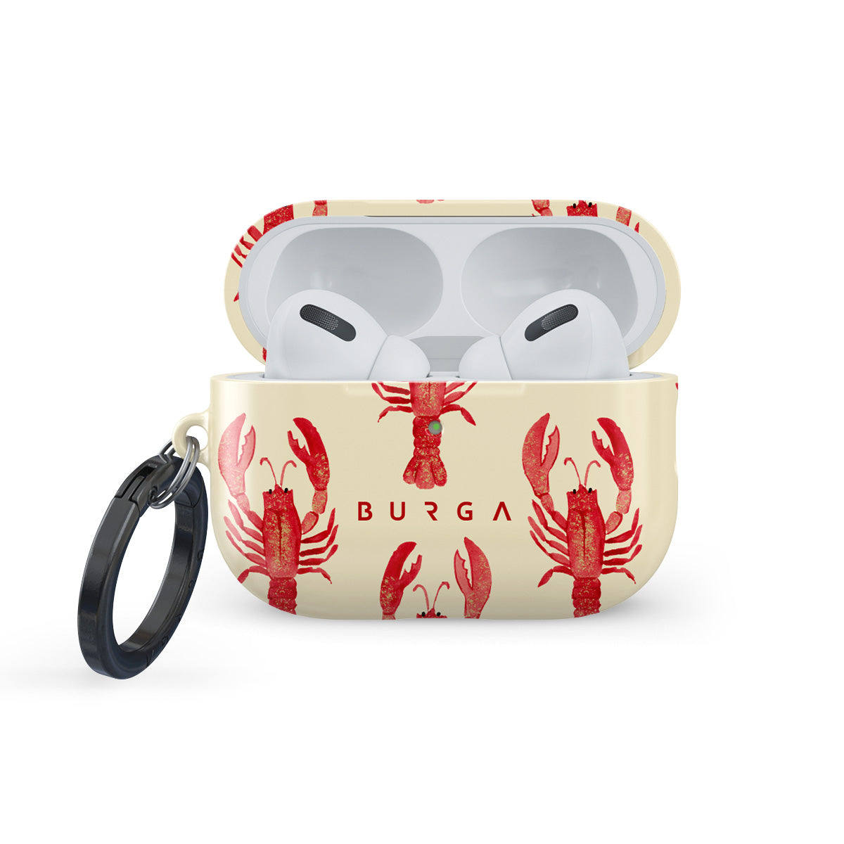 This design features: red lobsters