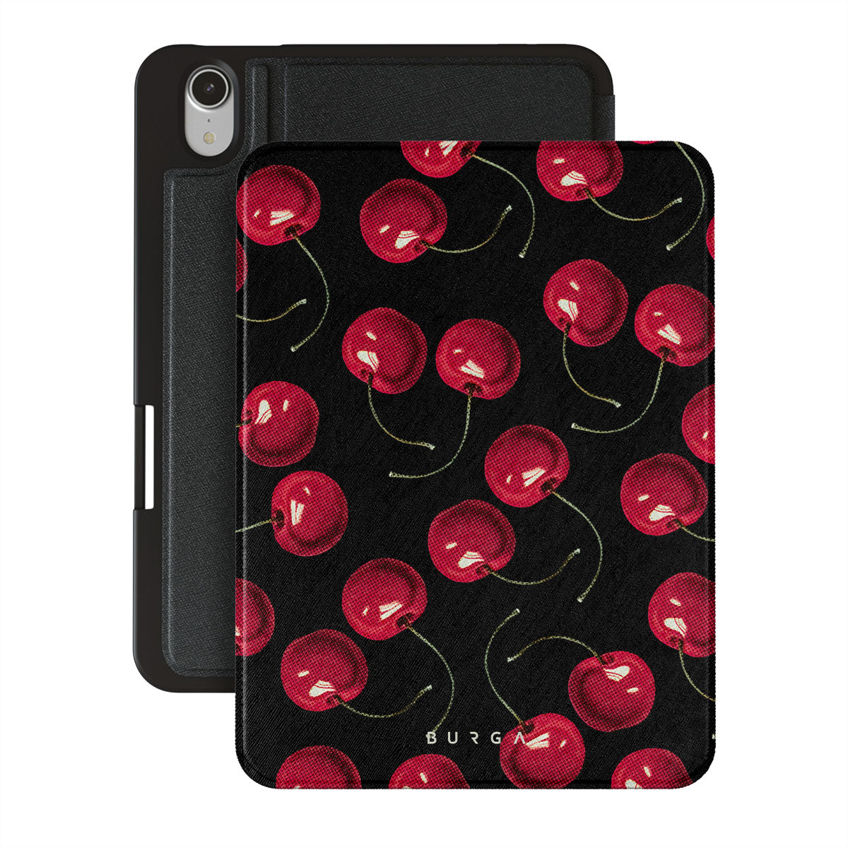 On a deep black background, rich red cherries stand out. Tempting and audacious, our Cherrybomb iPad Mini 8.3 (A17 Pro/6th Gen) 2021 folio case design is perfect for anyone who likes to keep things simple yet striking.