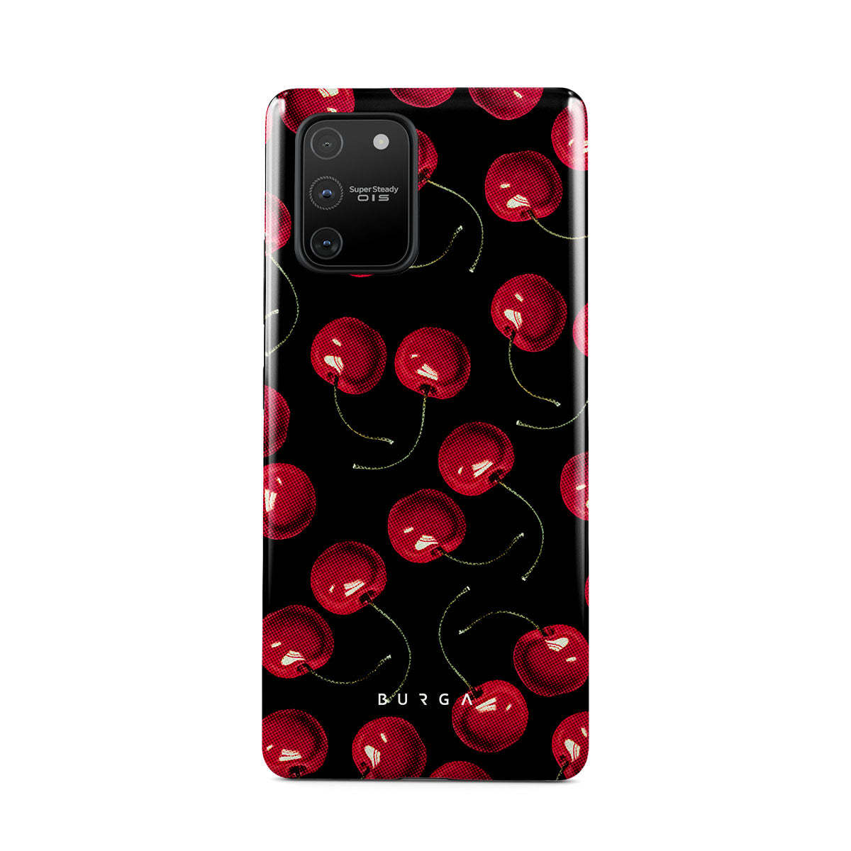 On a deep black background, rich red cherries stand out. Tempting and audacious, our Cherrybomb Samsung Galaxy S10 Lite phone case design is perfect for anyone who likes to keep things simple yet striking.