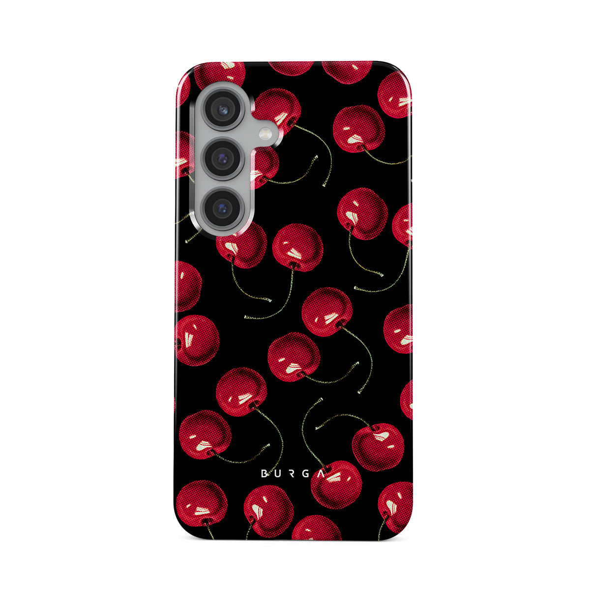 On a deep black background, rich red cherries stand out. Tempting and audacious, our Cherrybomb Samsung Galaxy S24 phone case design is perfect for anyone who likes to keep things simple yet striking.