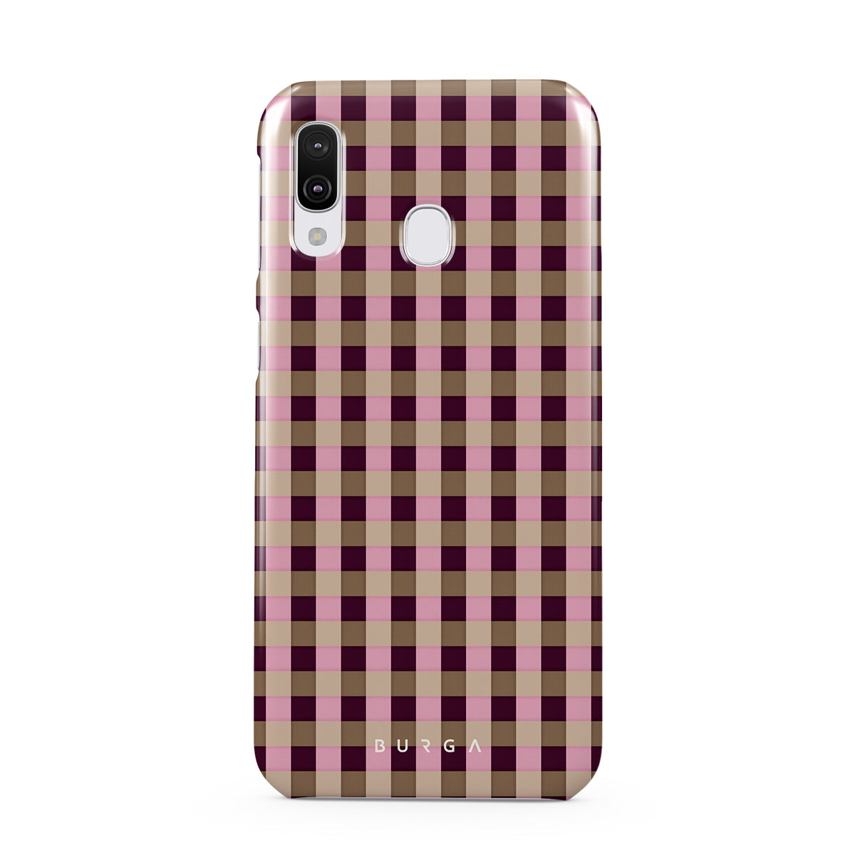 This design features: pink and burgundy plaid pattern, modern checkered style.