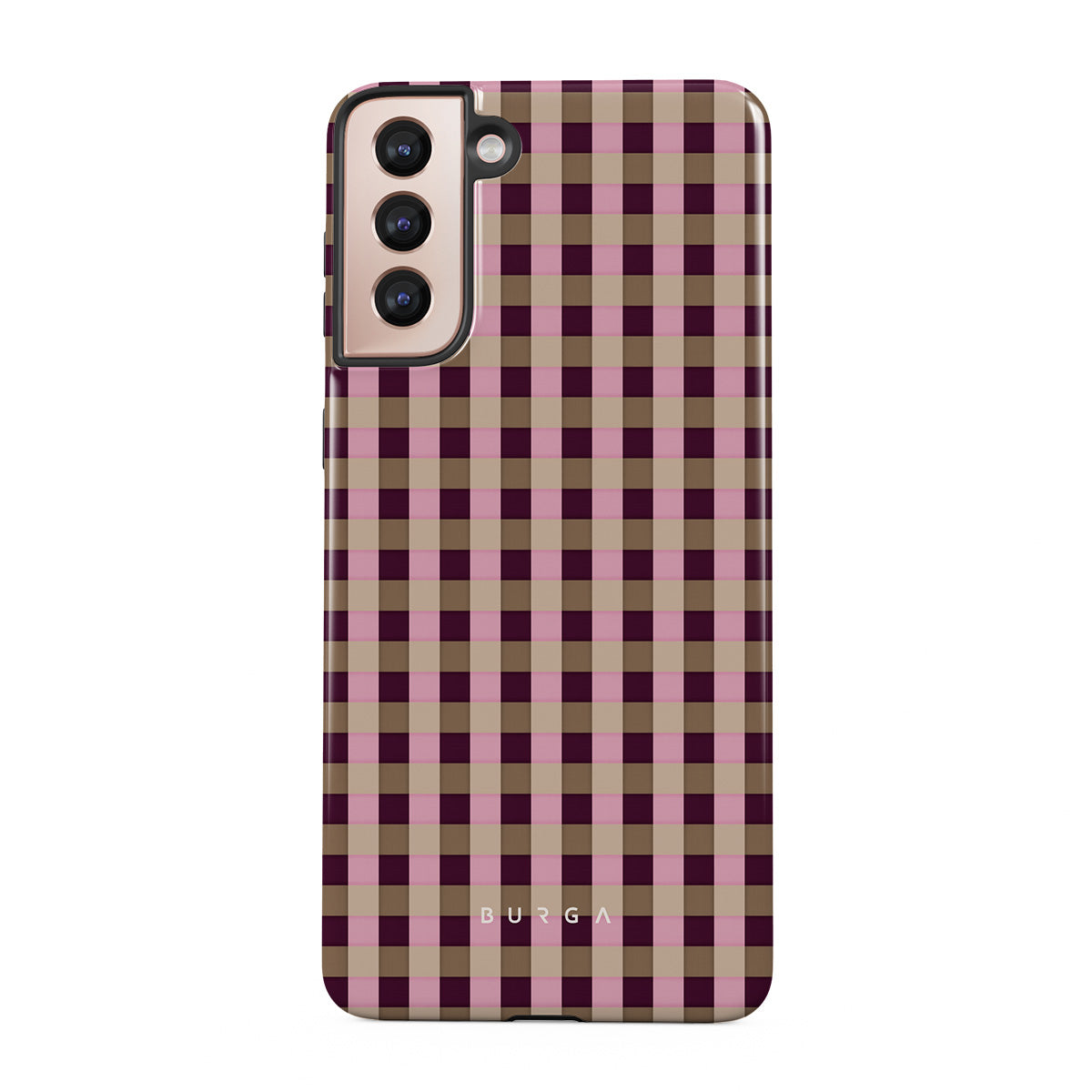 This design features: pink and burgundy plaid pattern, modern checkered style.