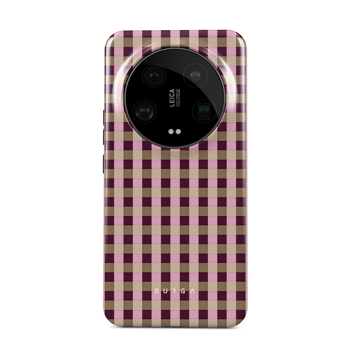 This design features: pink and burgundy plaid pattern, modern checkered style.