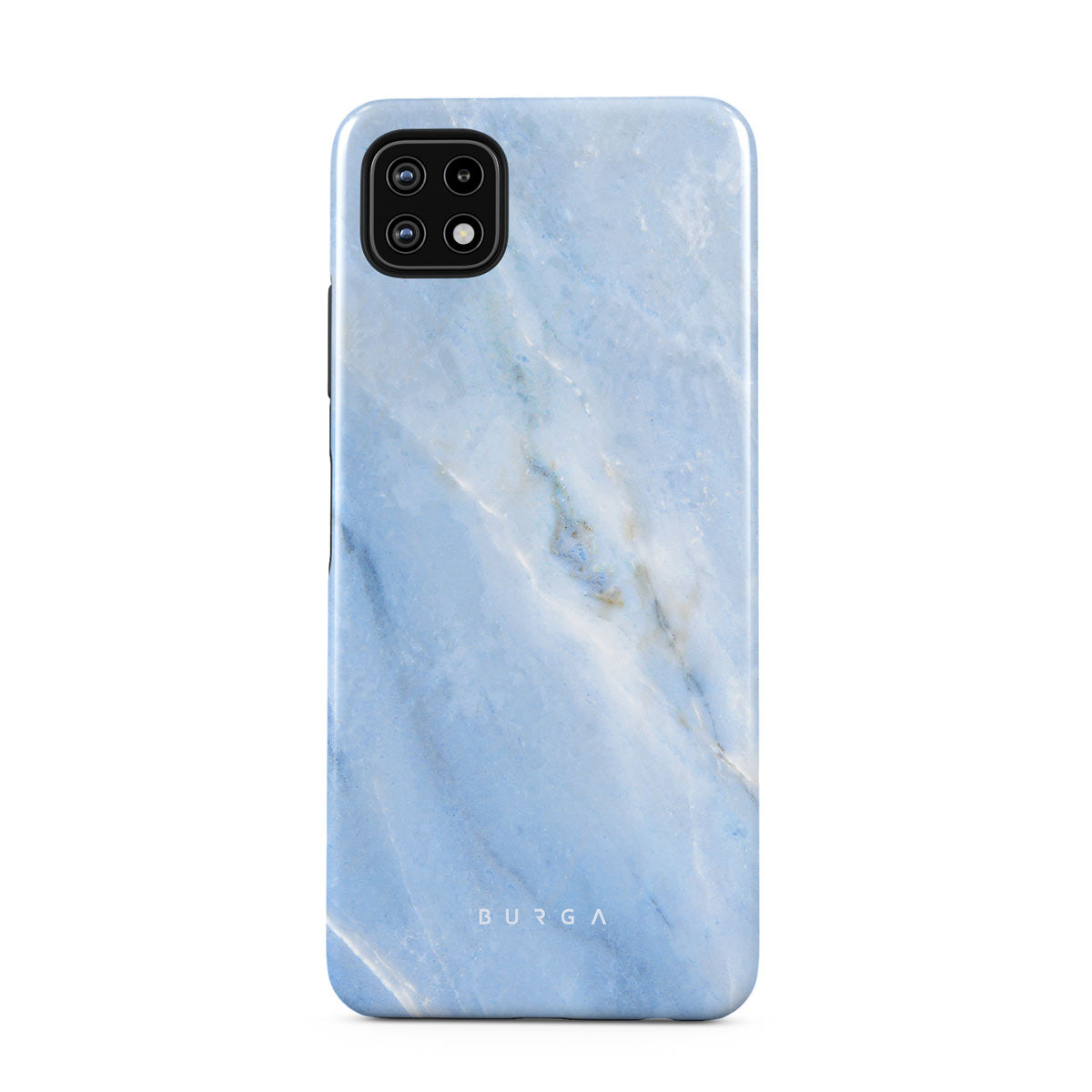 Bright, blue, and beautiful. The sky surrounds us all. Look up, remember and cherish the days of laying on the grass and counting the clouds. Take this feeling of vivid imagination with a protective Samsung Galaxy A22 5G phone case designed and inspired by the shapeshifting clouds.