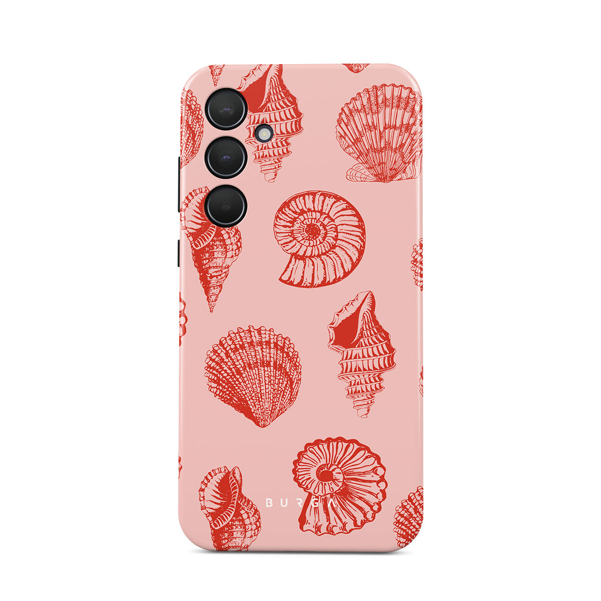 With a palette of soft pinks and an assortment of shells adorning the piece, our Coastal Treasure Samsung Galaxy A35 case design invokes the calming feel of a day spent by the shore. Like the countless hidden gems discovered along the coast, each shell is unique and distinct, adding to the charm of the design.