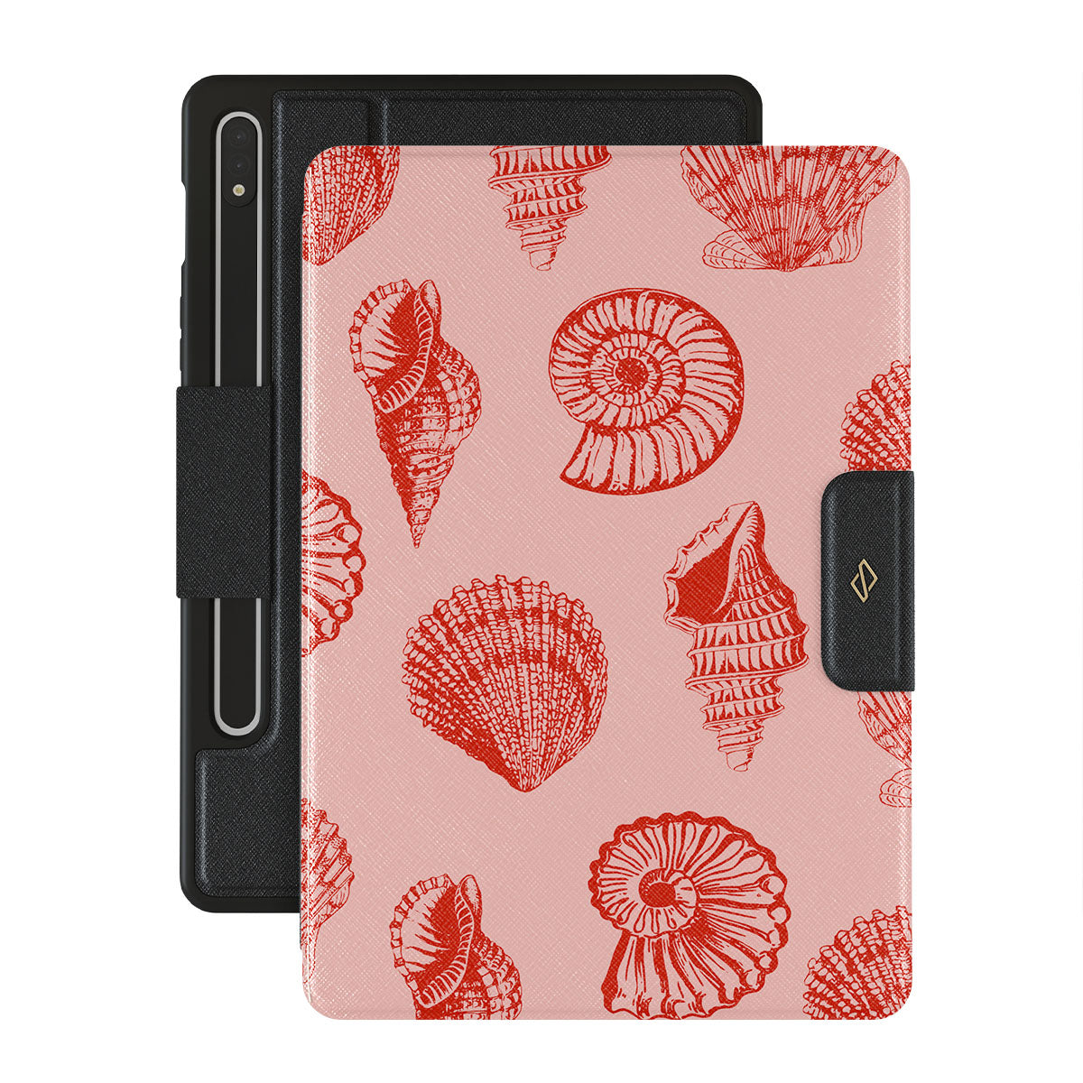 With a palette of soft pinks and an assortment of shells adorning the piece, our Coastal Treasure [product] Samsung Galaxy Tab S8+/S7+/S7 FE folio case design invokes the calming feel of a day spent by the shore. Like the countless hidden gems discovered along the coast, each shell is unique and distinct, adding to the charm of the design.