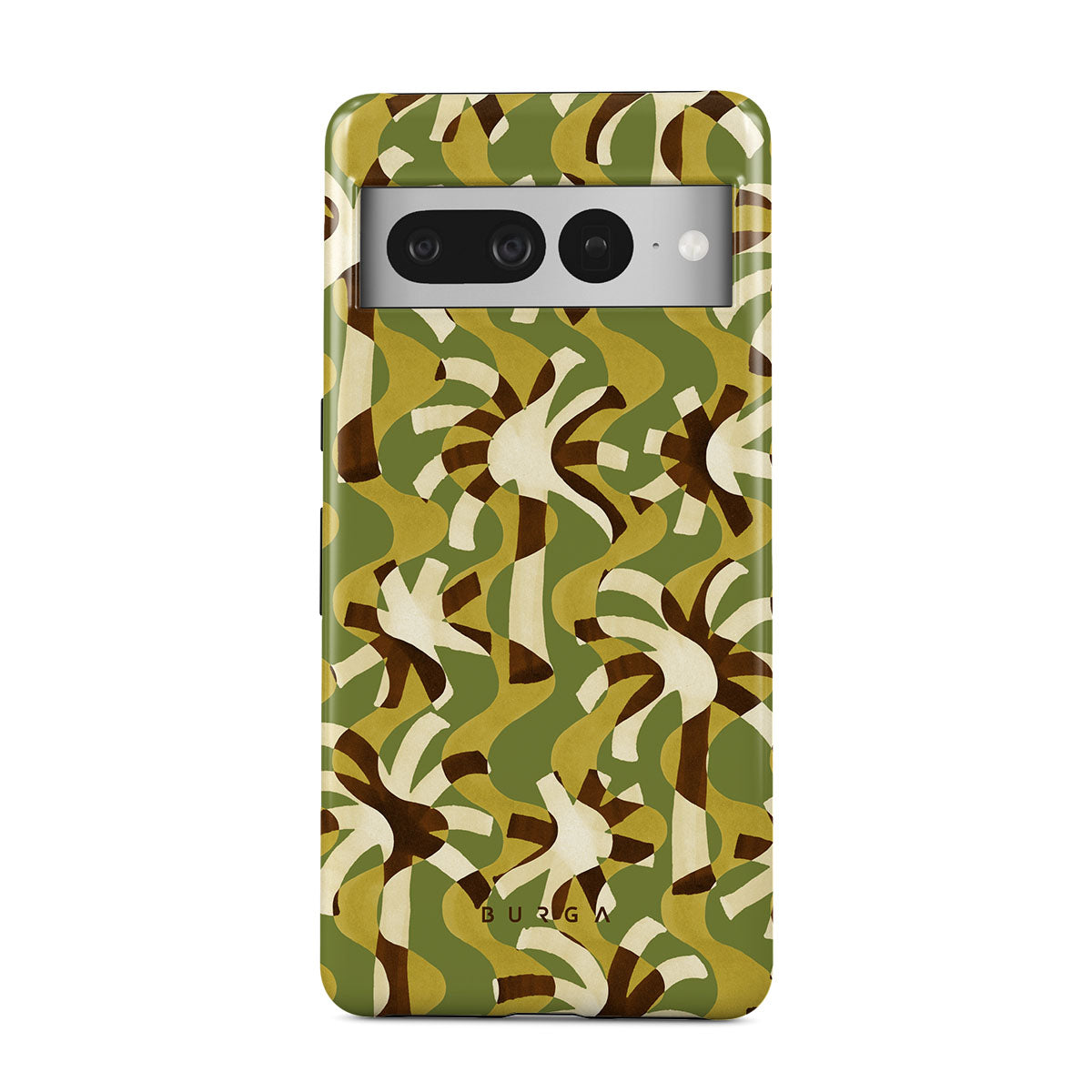 A leafy blur of tropical motion. This Google Pixel 7 Pro phone case design feels like a memory of a rainforest walk you never took, but wish you had. Hot, hazy, and happily lost.
