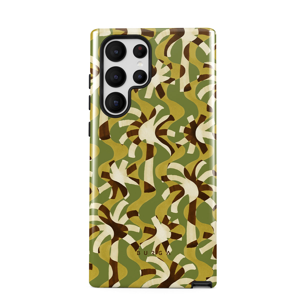 A leafy blur of tropical motion. This Samsung Galaxy S22 Ultra phone case design feels like a memory of a rainforest walk you never took, but wish you had. Hot, hazy, and happily lost.