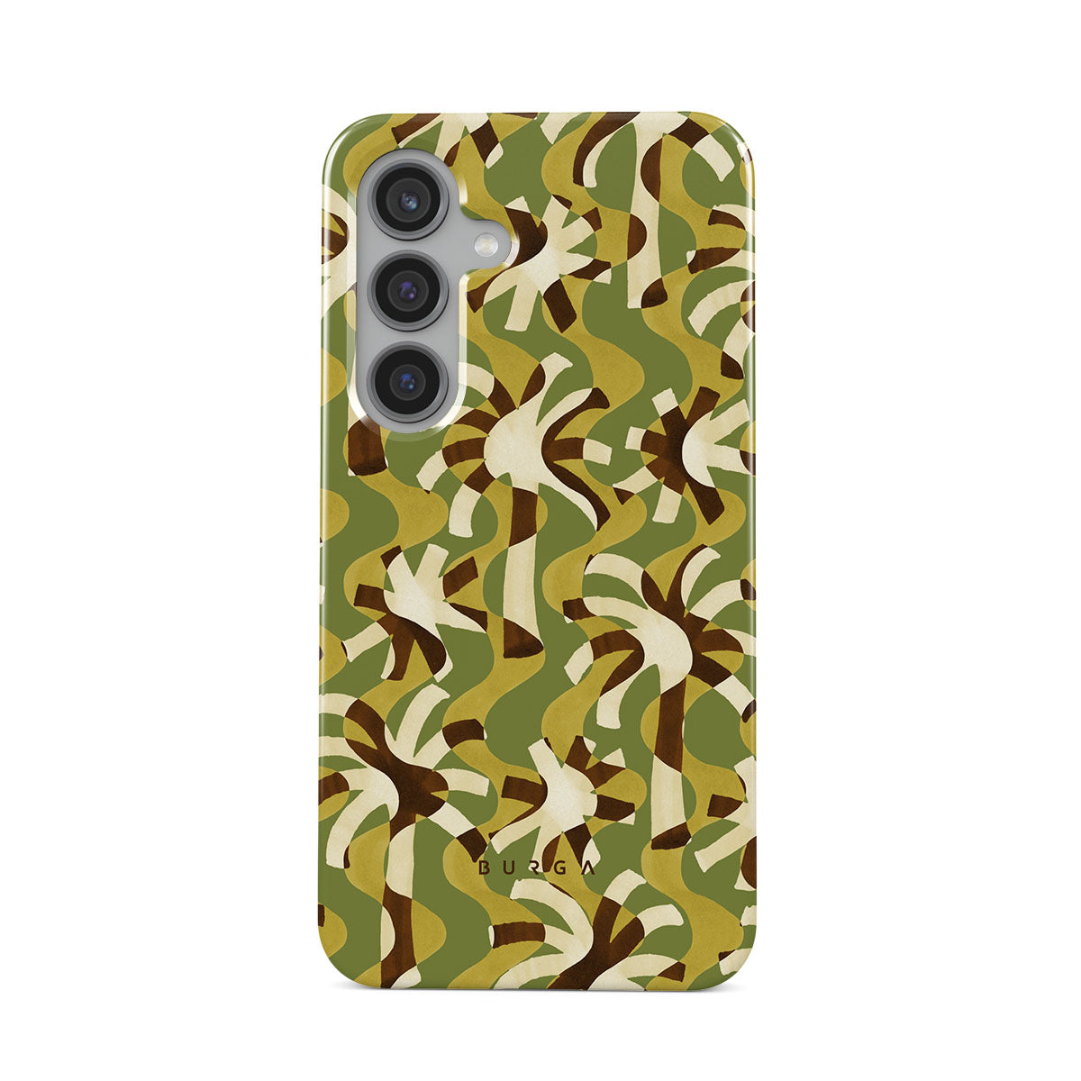 A leafy blur of tropical motion. This Samsung Galaxy S24 Plus phone case design feels like a memory of a rainforest walk you never took, but wish you had. Hot, hazy, and happily lost.
