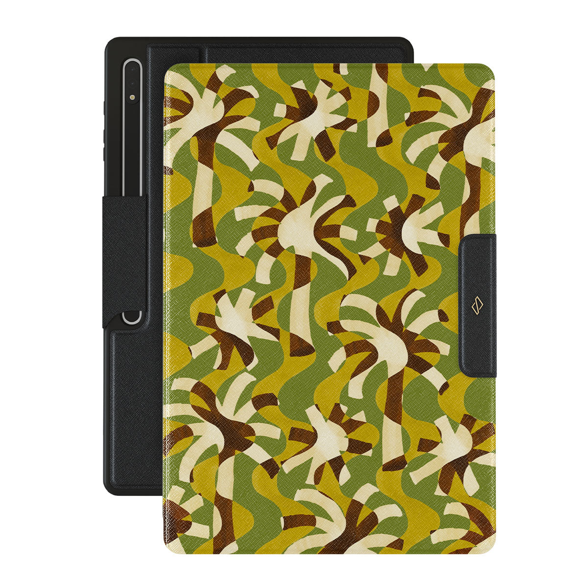 A leafy blur of tropical motion. This {product} design feels like a memory of a rainforest walk you never took, but wish you had. Hot, hazy, and happily lost.